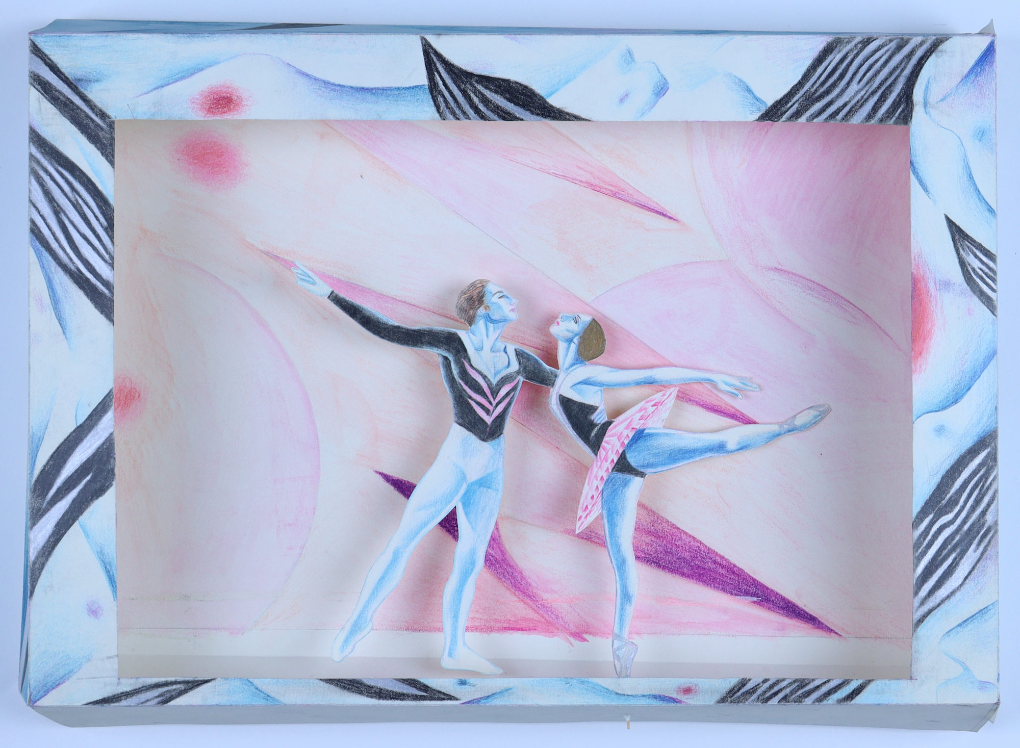 Three dimensional paper "theater" that folds flat (flattened dimensions are 16" x 22")