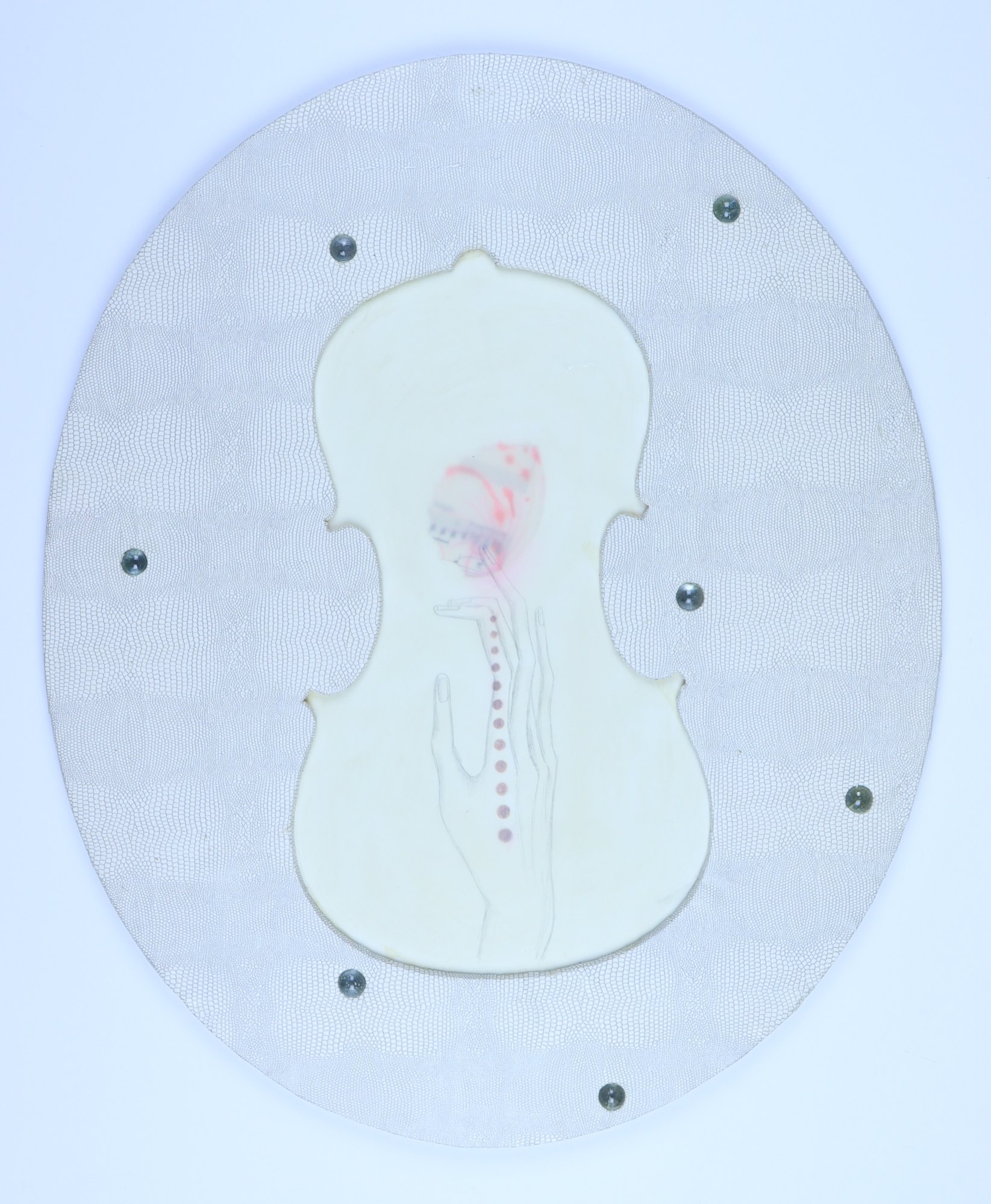embossed paper, foam core, vellum, graphite pencil, color pencil, glass pieces