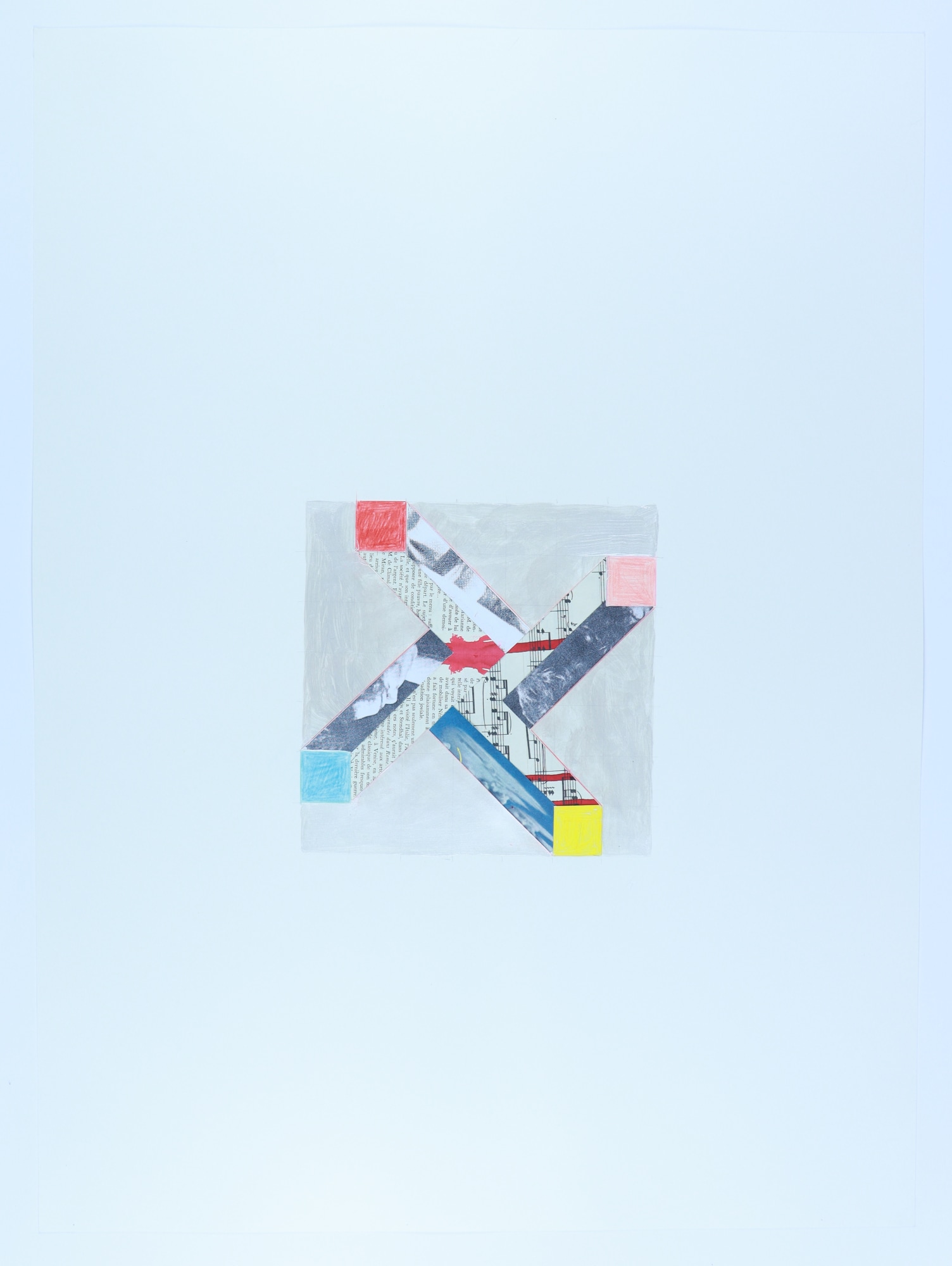Acrylic & Irridescent Acrylic, photocopy, color pencil on Rag Paper