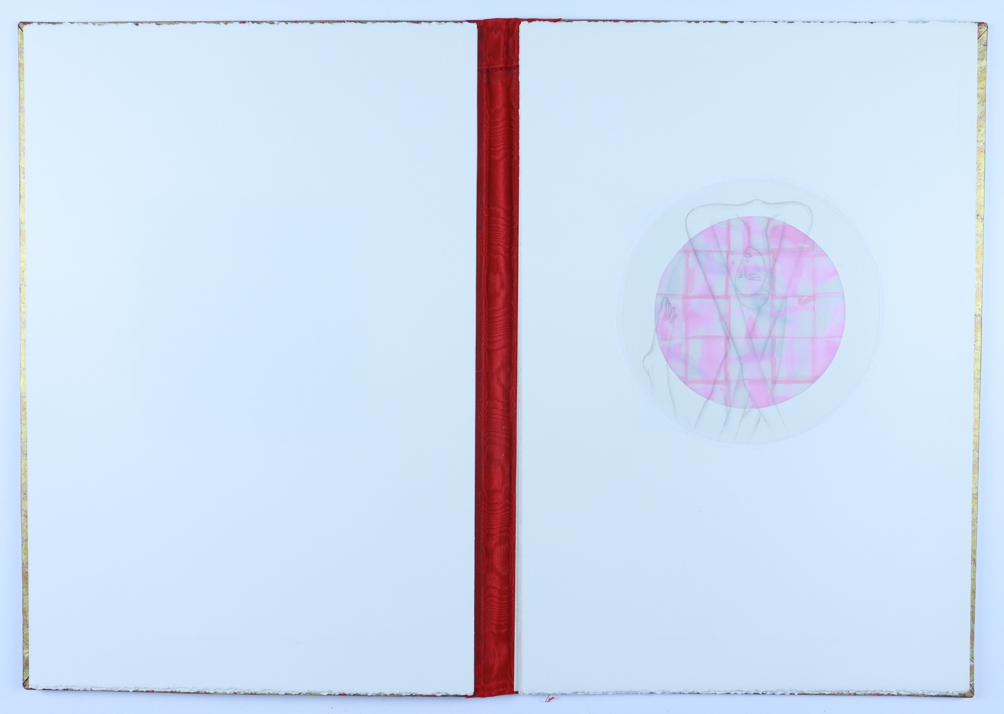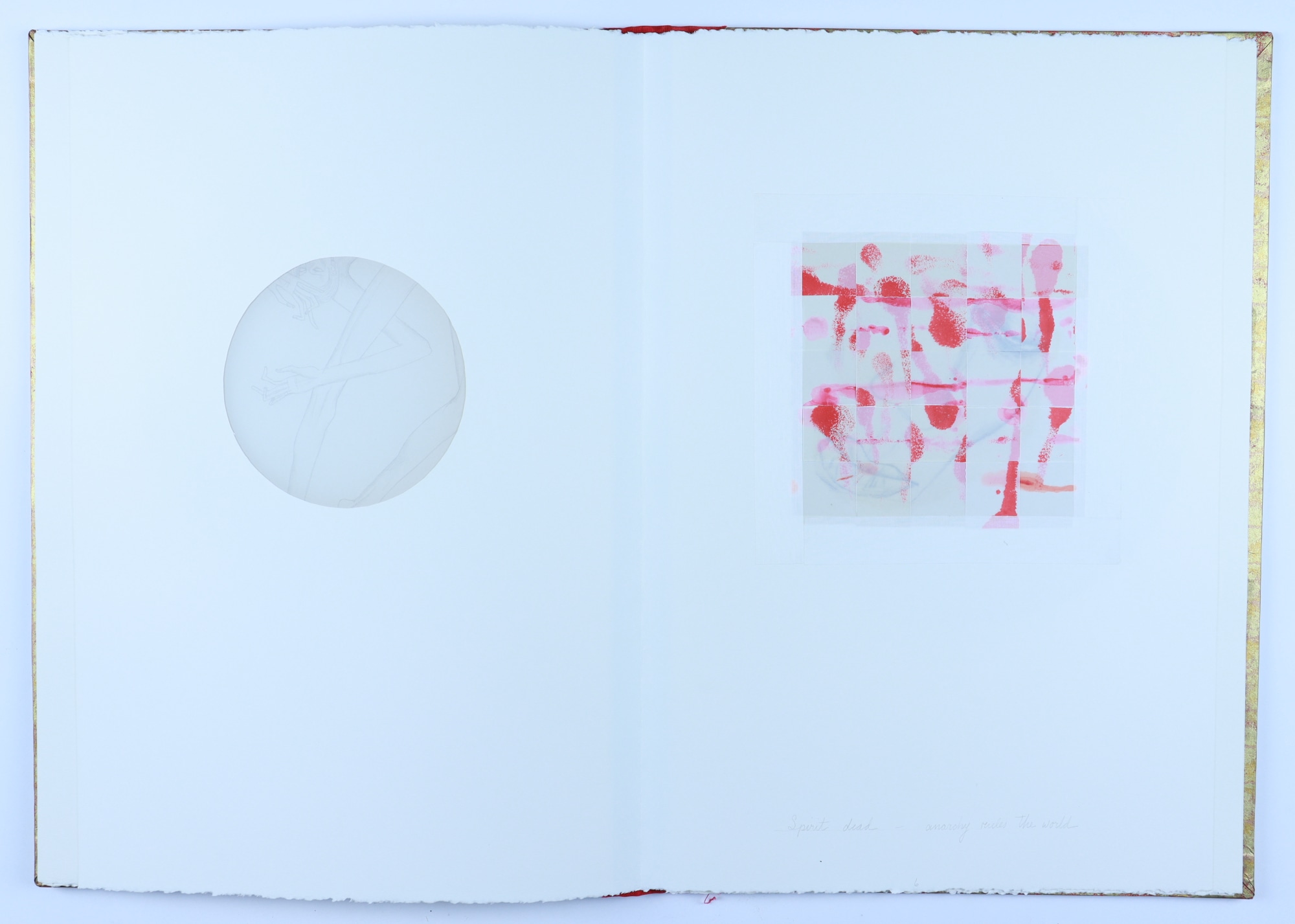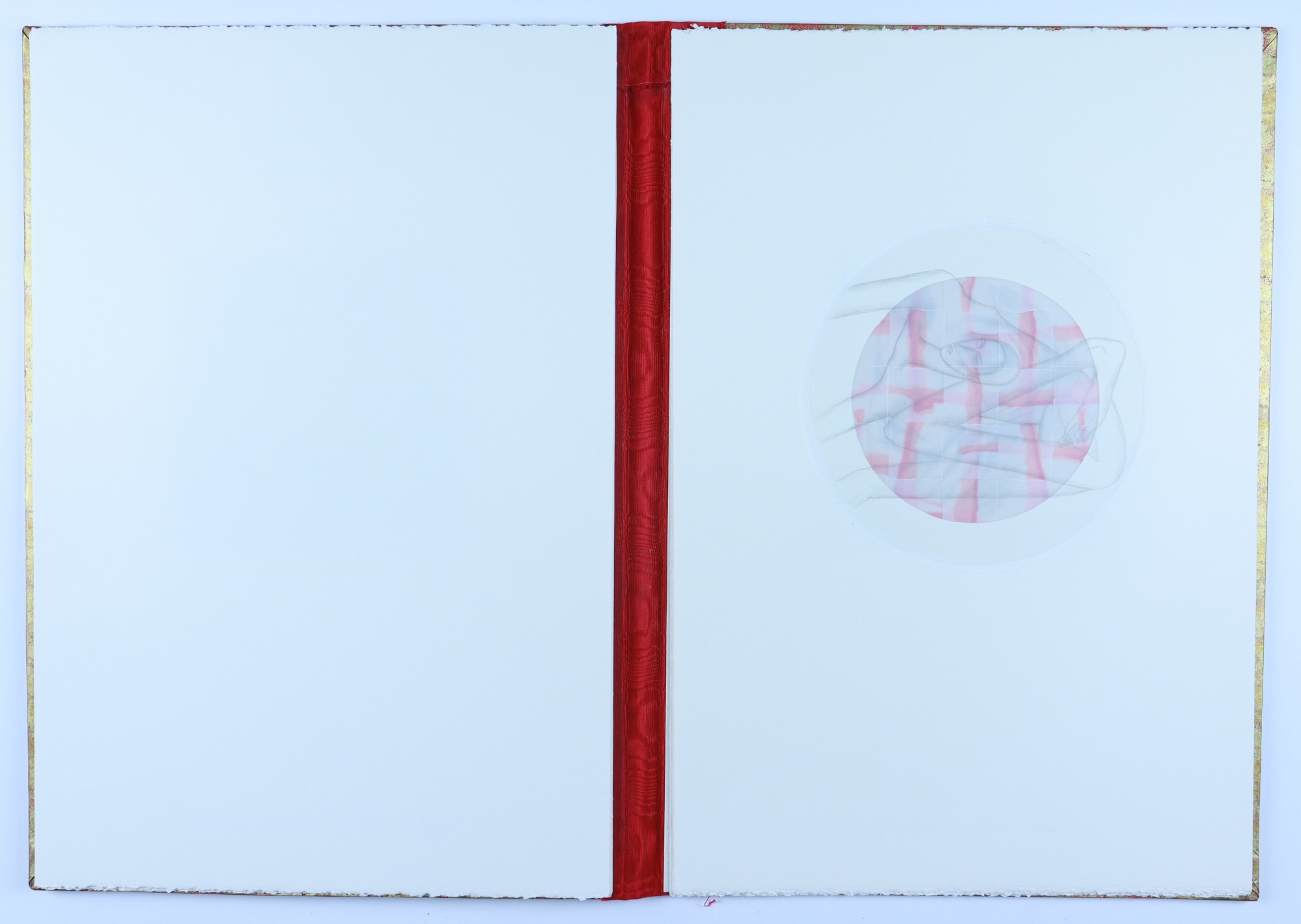 Ink, vellum, graphite pencil, archival paper, fabric, beads, thread, muscial score, foam core, japanese paper
