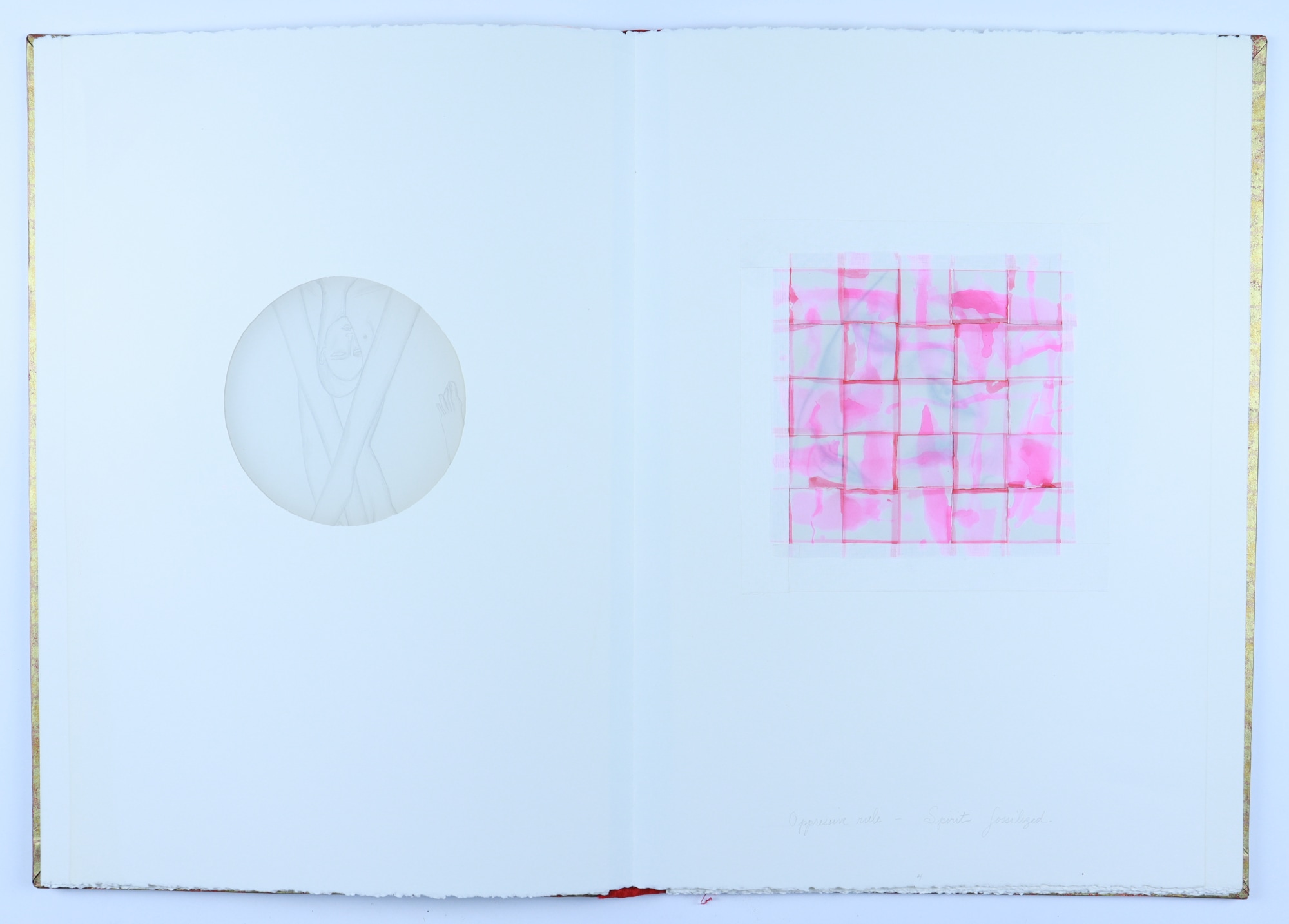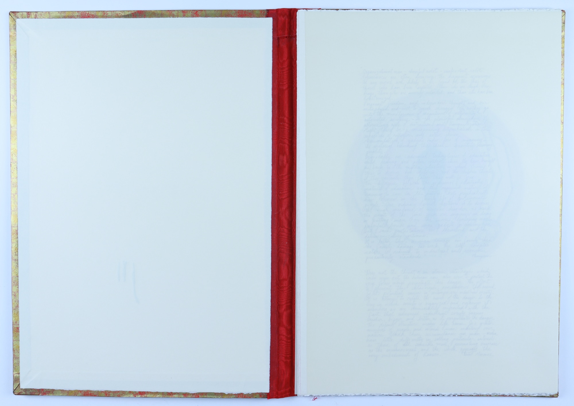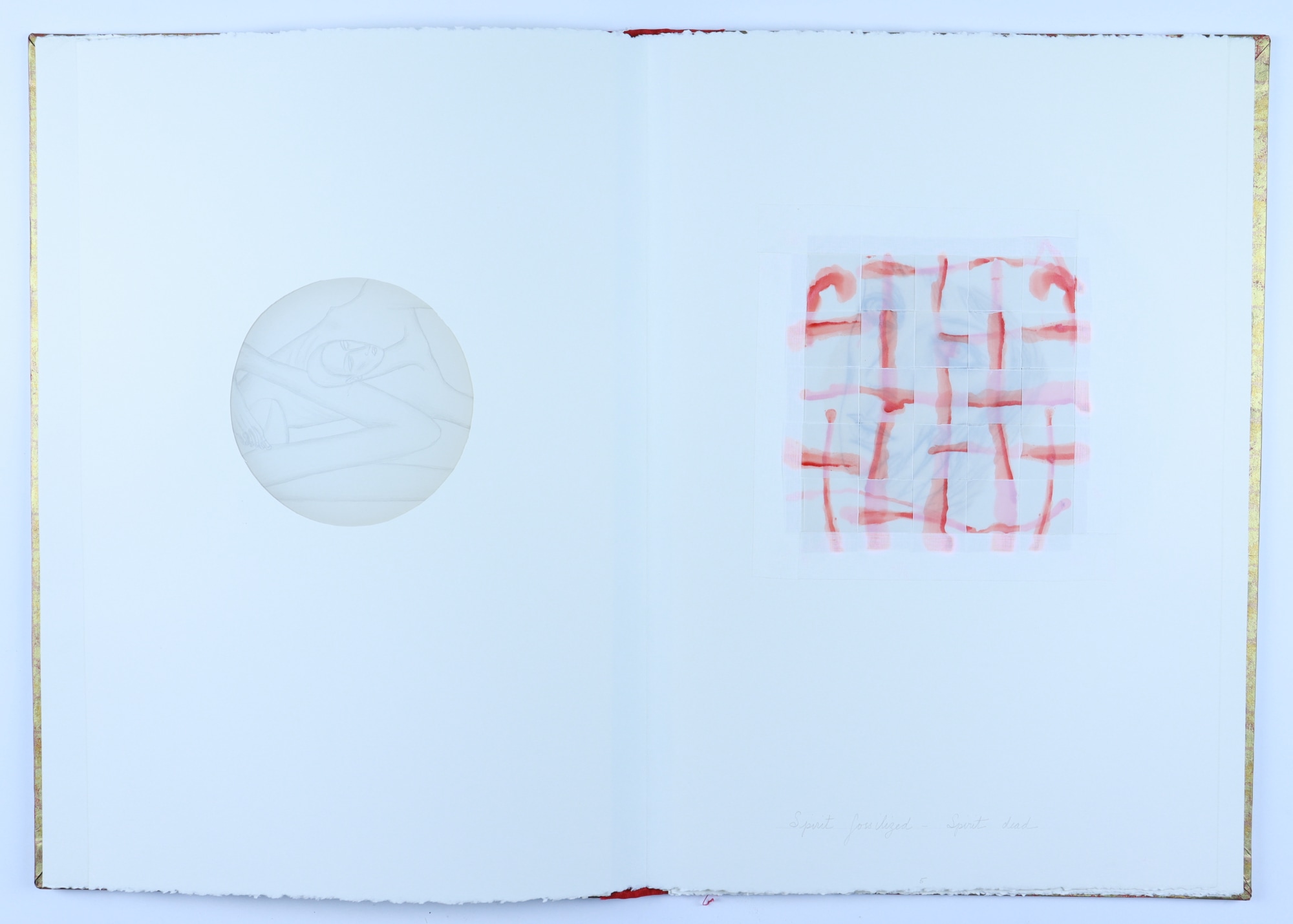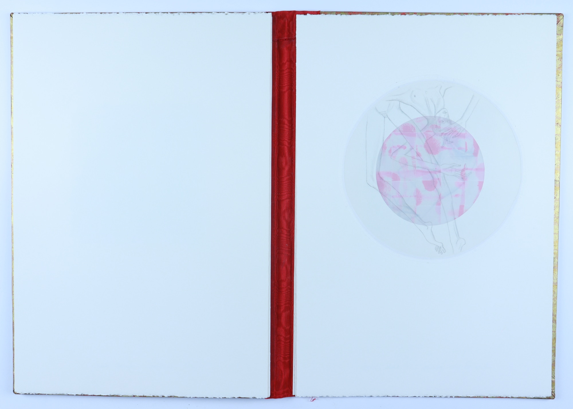 Ink, vellum, graphite pencil, archival paper, fabric, beads, thread, muscial score, foam core, japanese paper