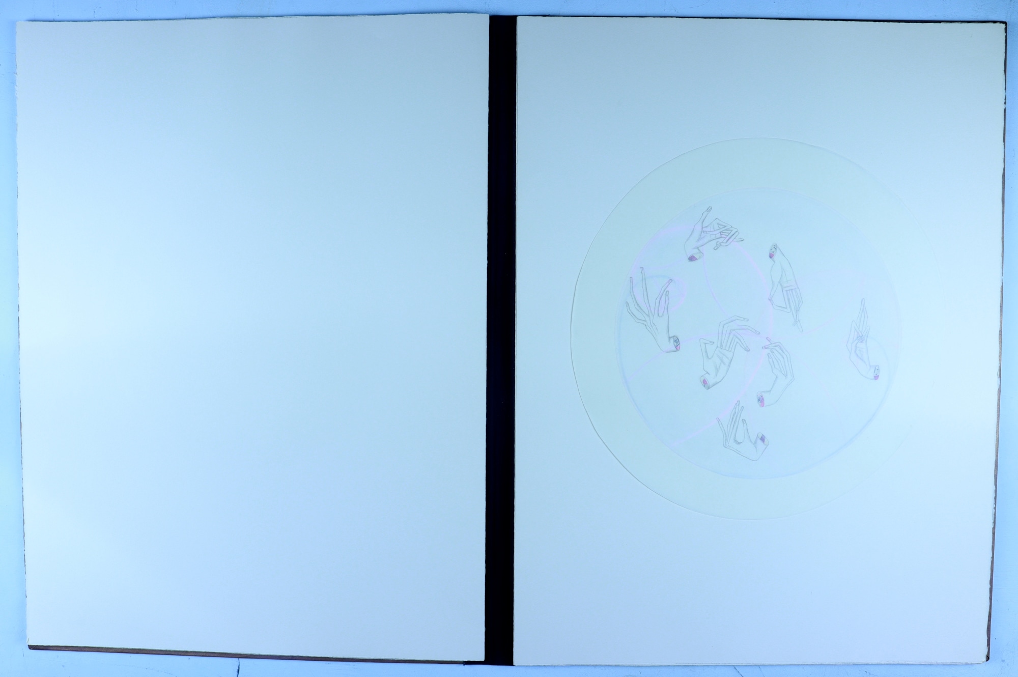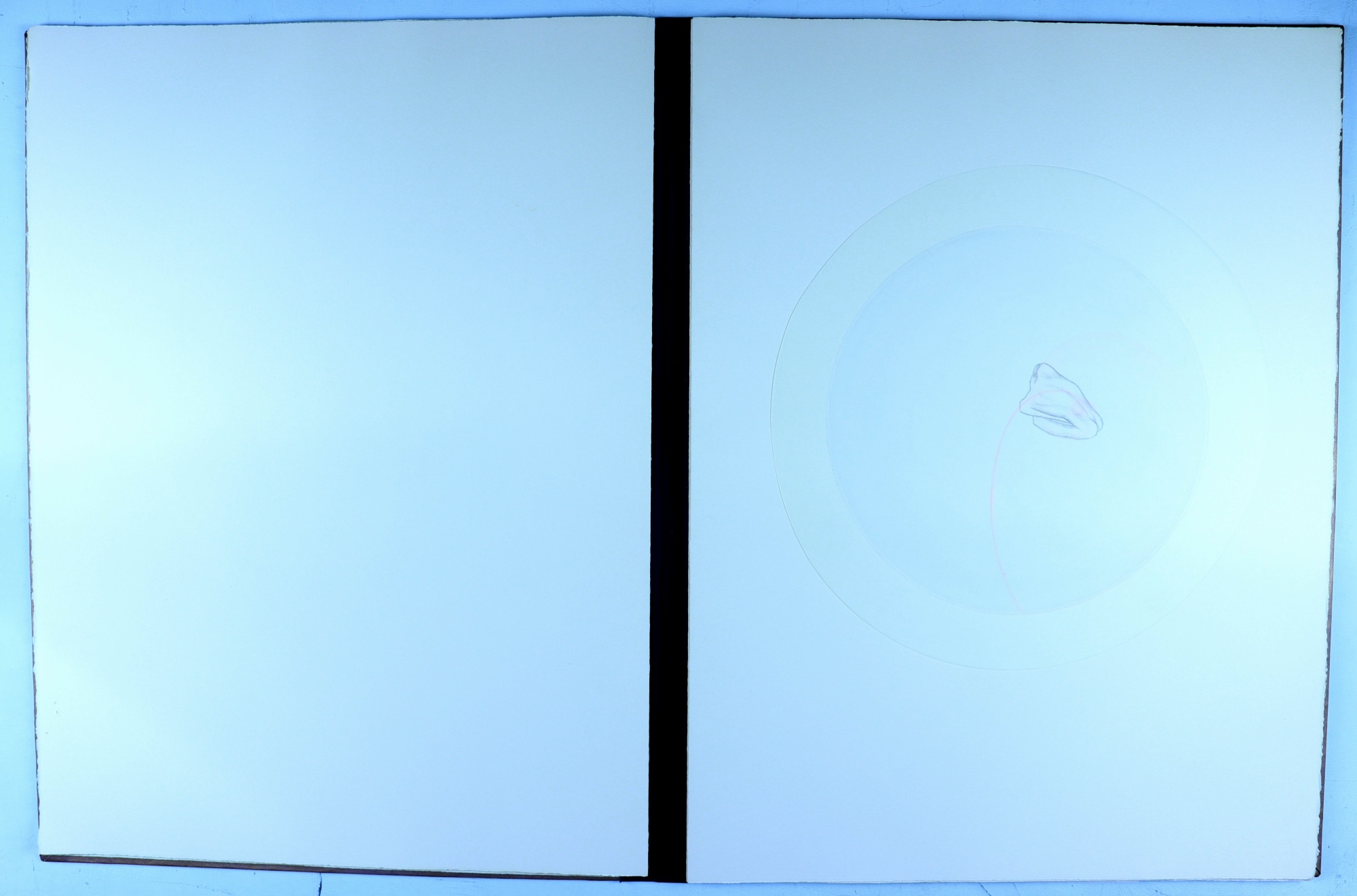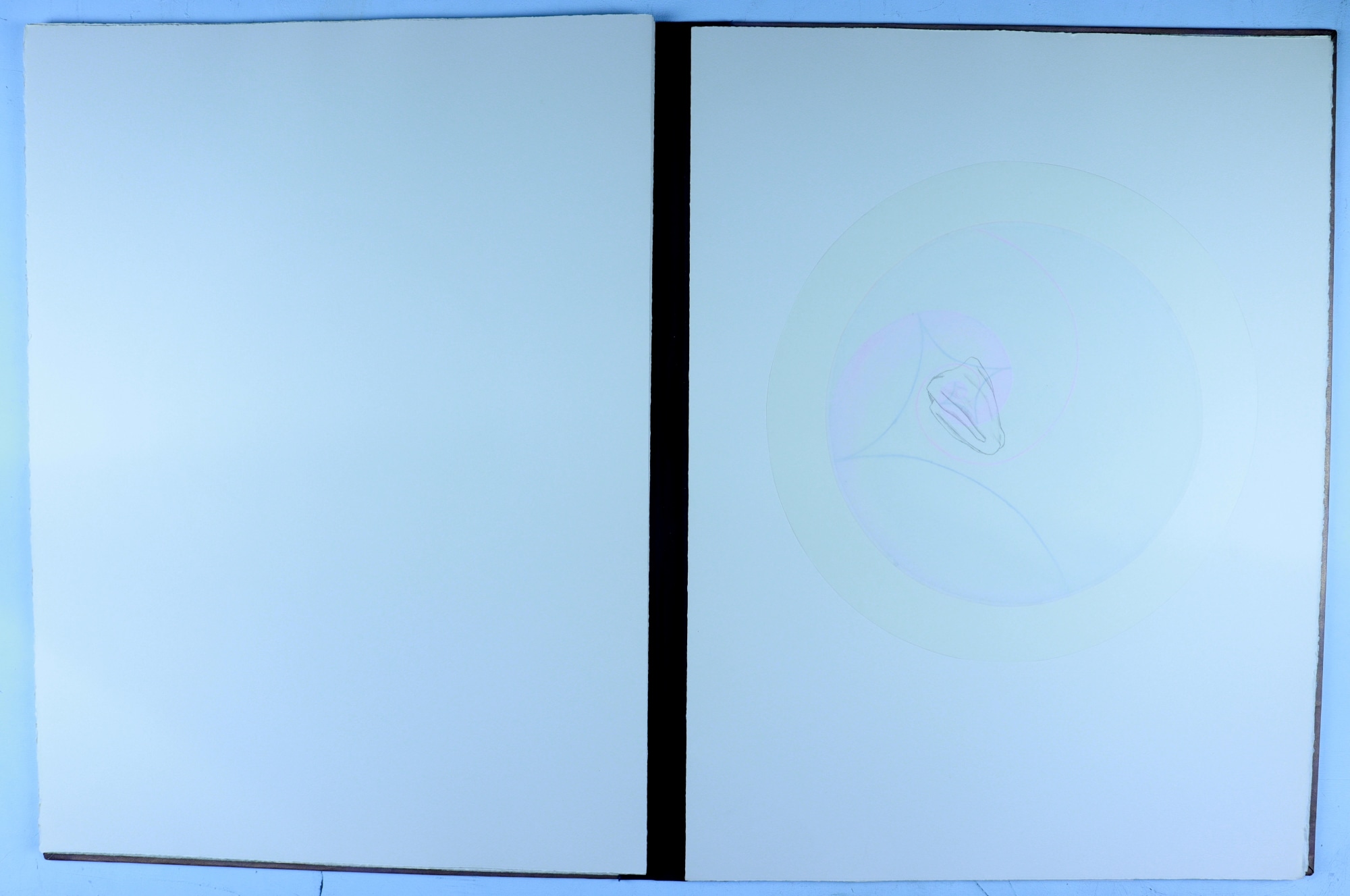 Iridescent images lose the detail of the abstract drawing atop the iridescent image. It is faintly visible through the vellum of the previous image.