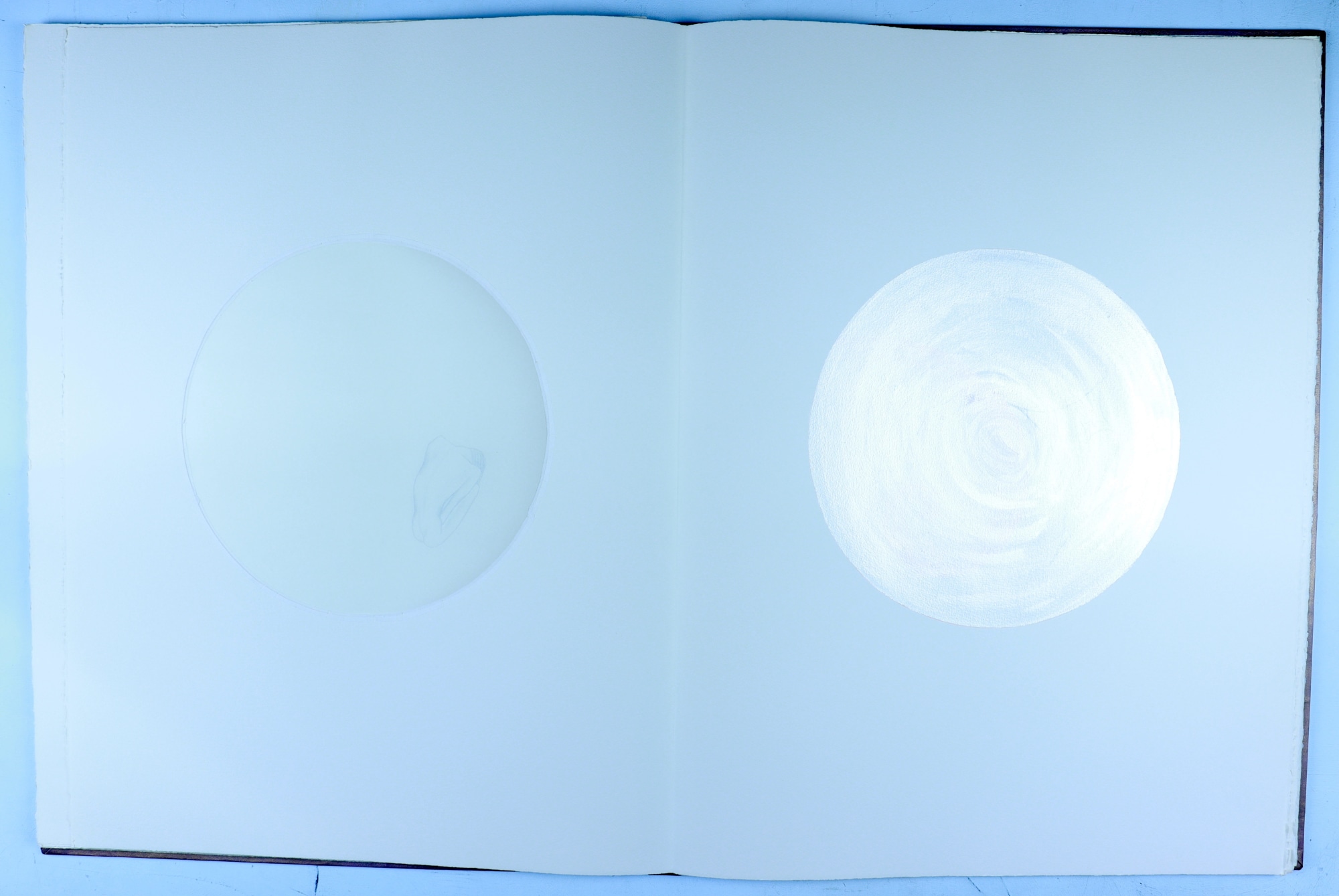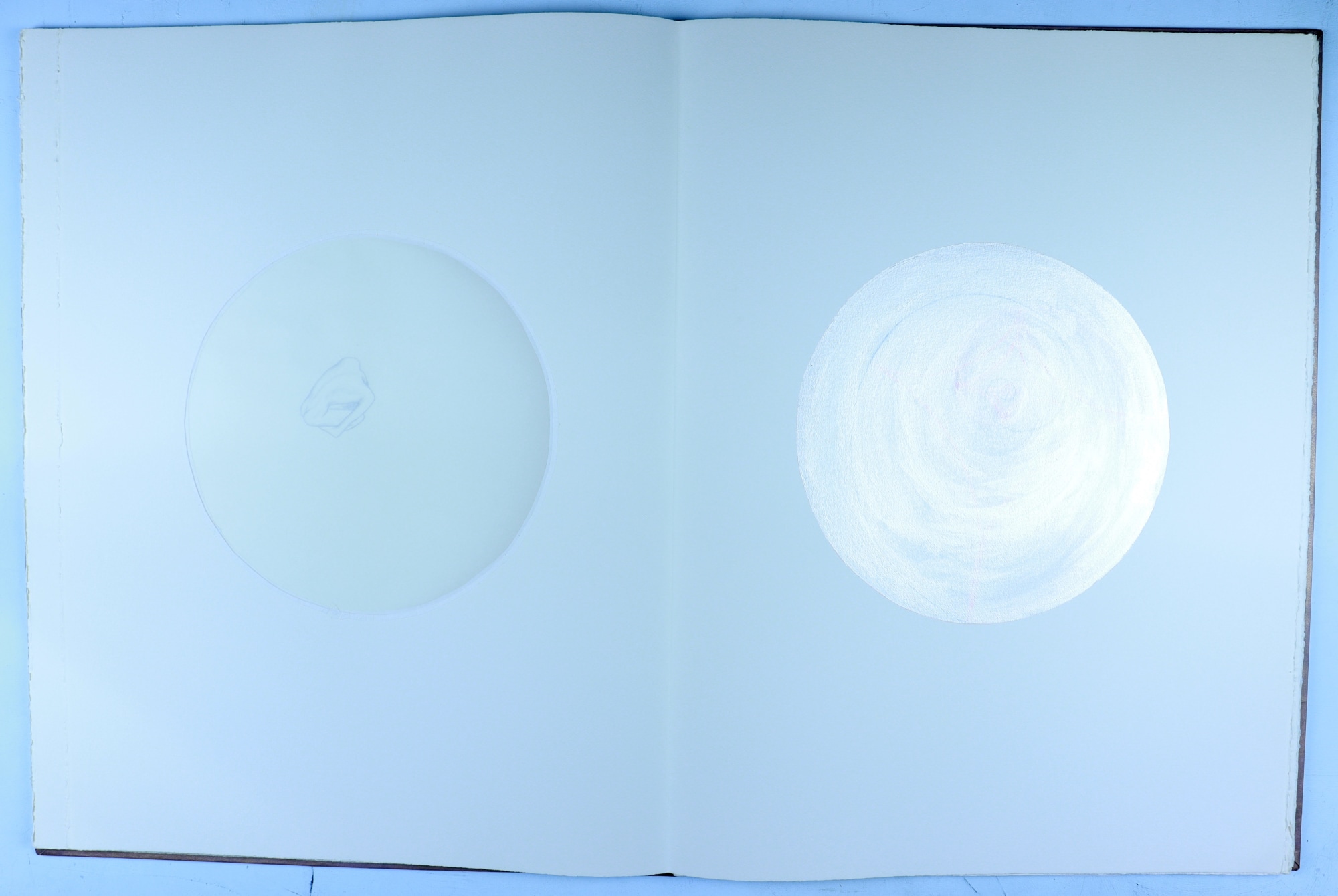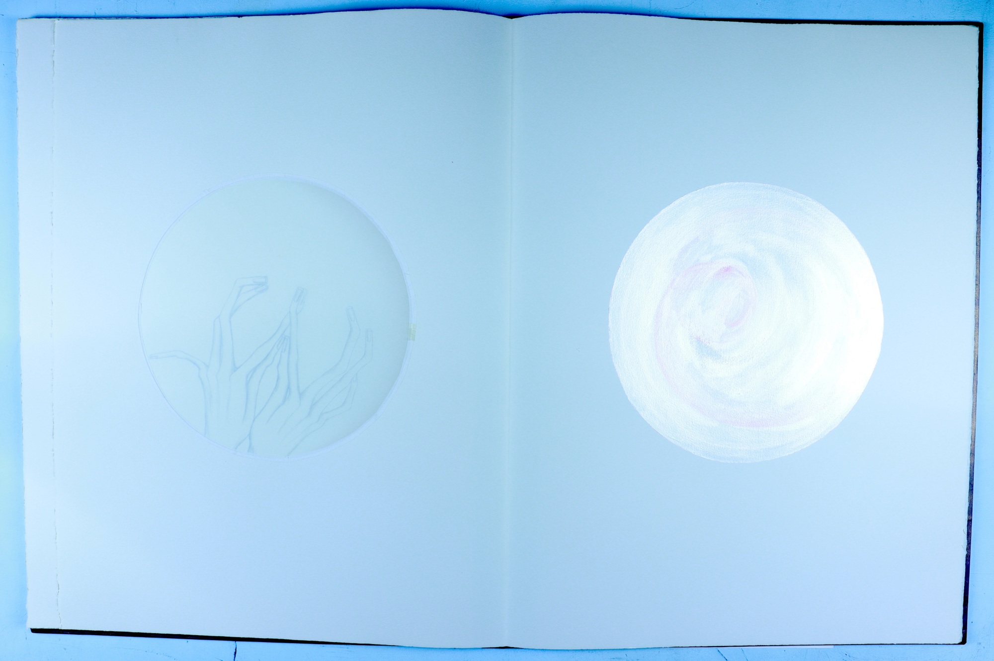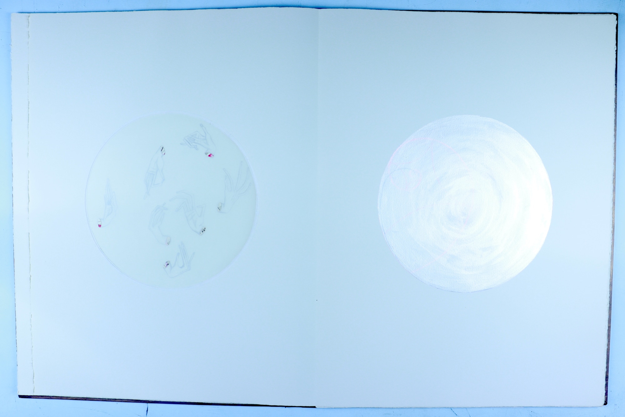 Iridescent images lose the detail of the abstract drawing atop the iridescent image. It is faintly visible through the vellum of the previous image.