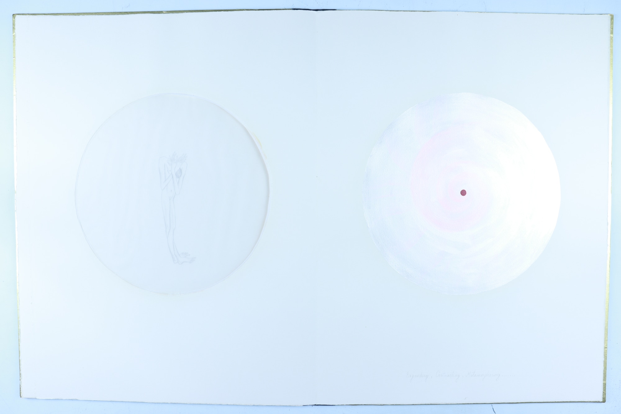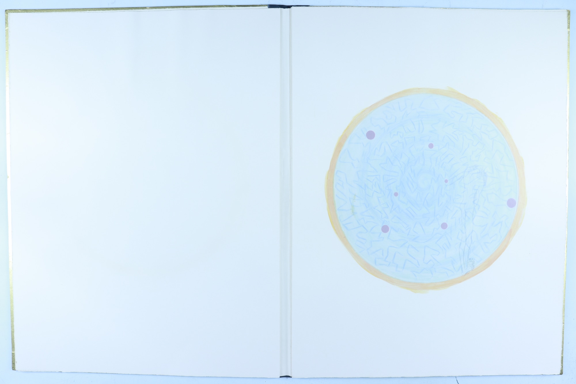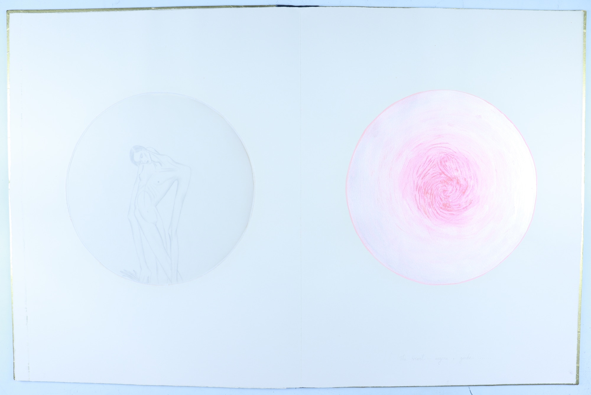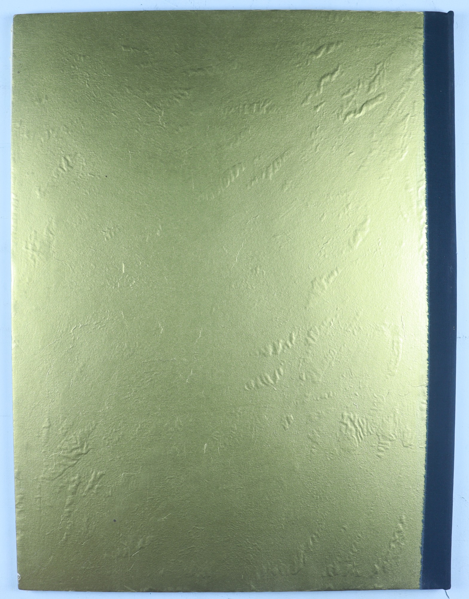 Vellum, archival paper, foam core, gold paper, plastic gem stones, iridescent paint, color pencil, graphite pencil, fabric
