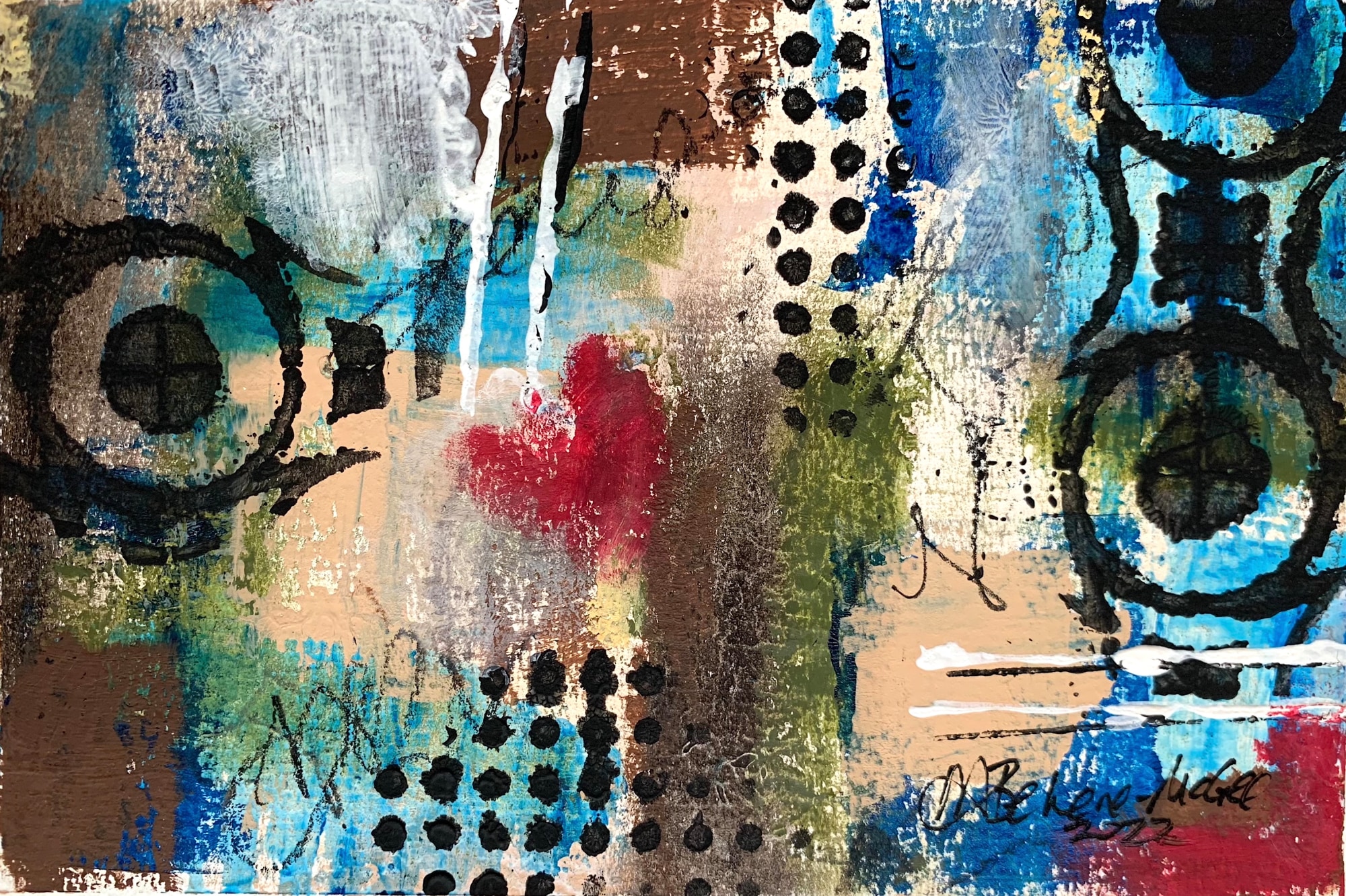 Original Abstract using acrylics, soft oil pastel and charcoal pencils on watercolor paper.
