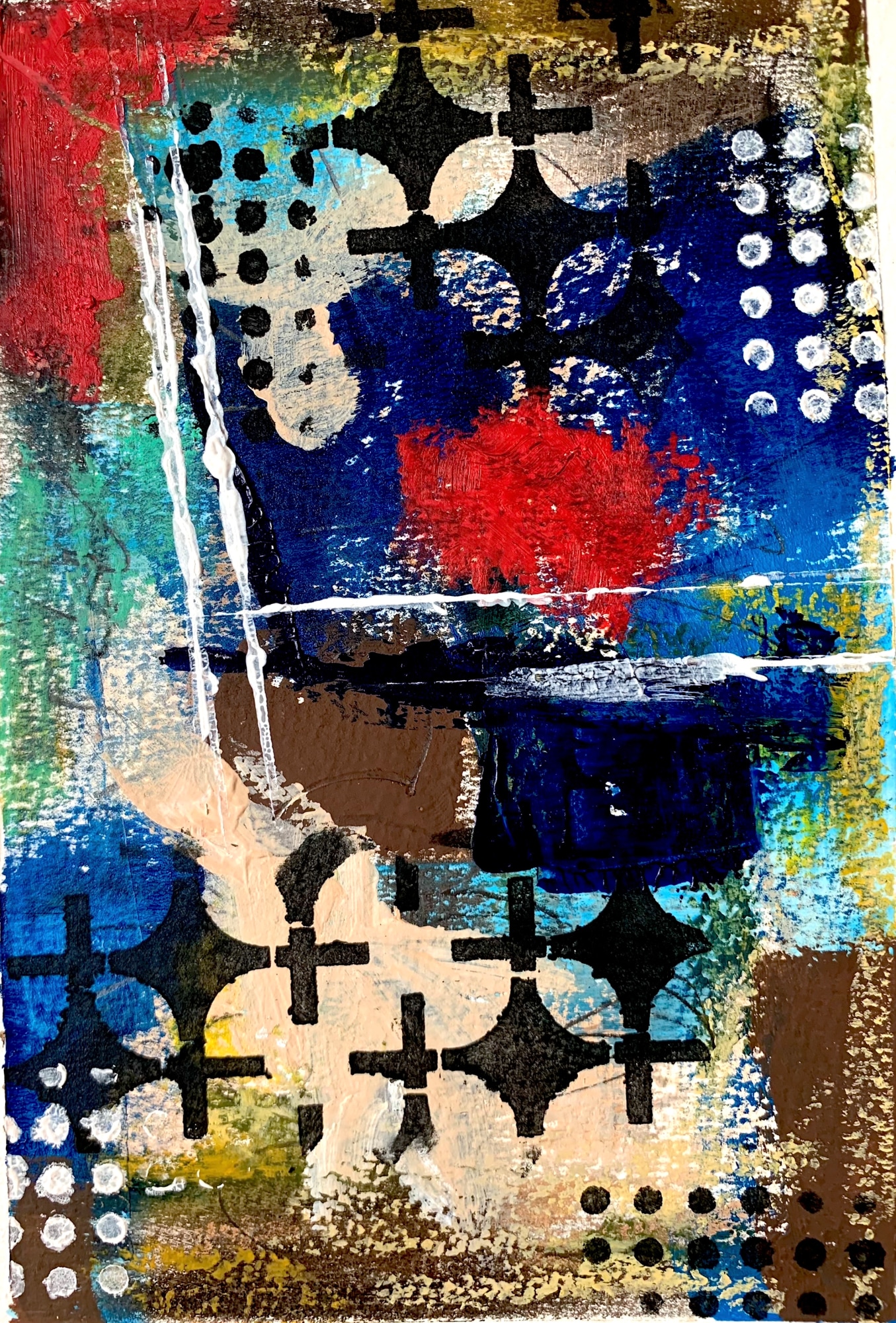 Original Abstract using acrylics, soft oil pastel and charcoal pencils on watercolor paper.
