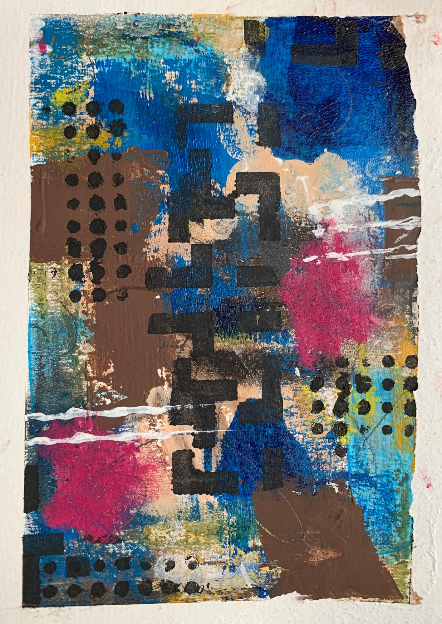 Original Abstract using acrylics, soft oil pastel and charcoal pencils on watercolor paper.