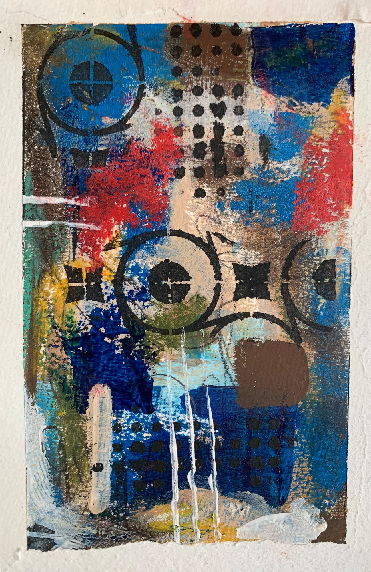 Original Abstract using acrylics, soft oil pastel and charcoal pencils on watercolor paper.