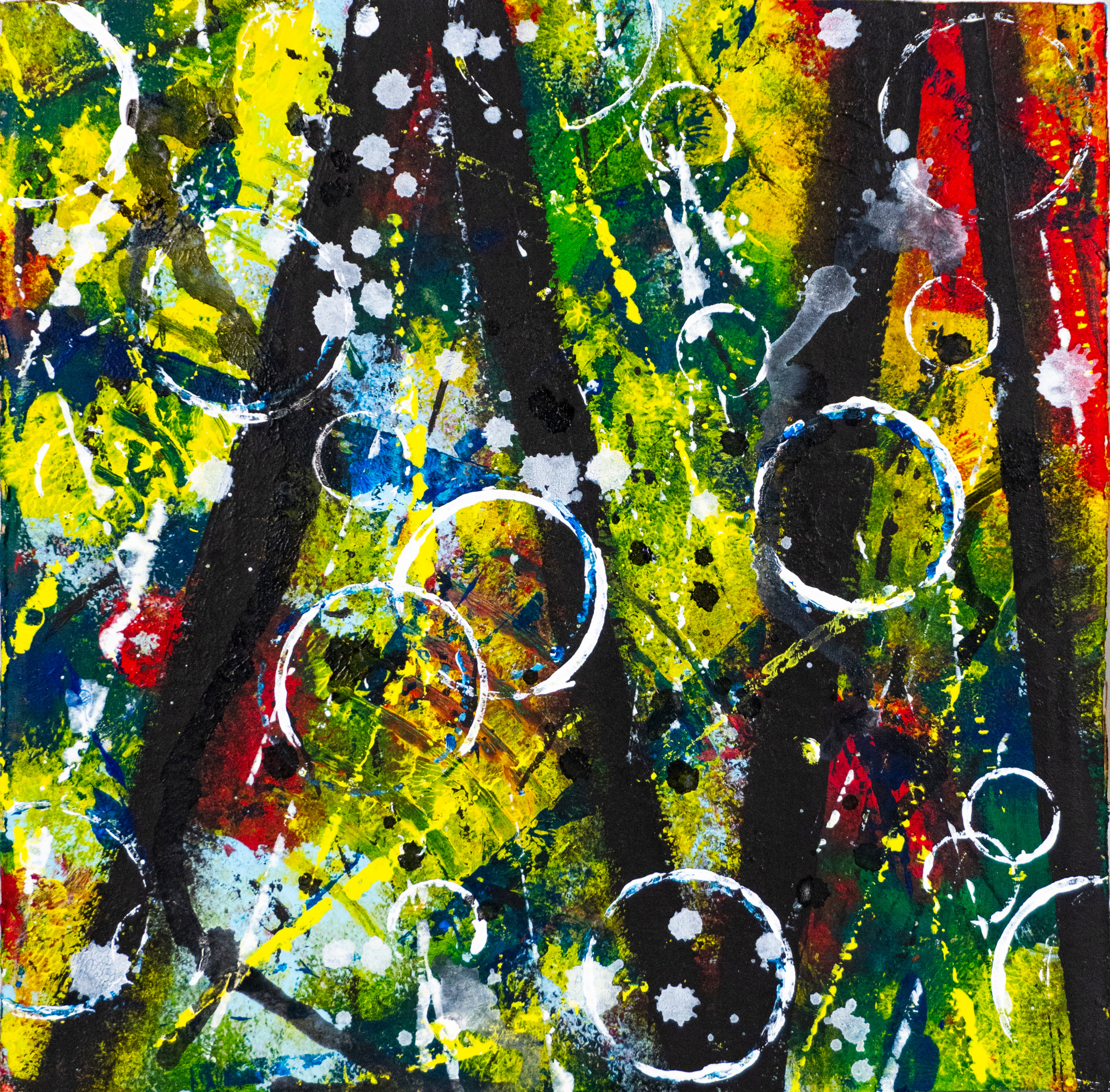 - Subject Matter: Abstract acrylic, geometric, lines, collage paper, stamping