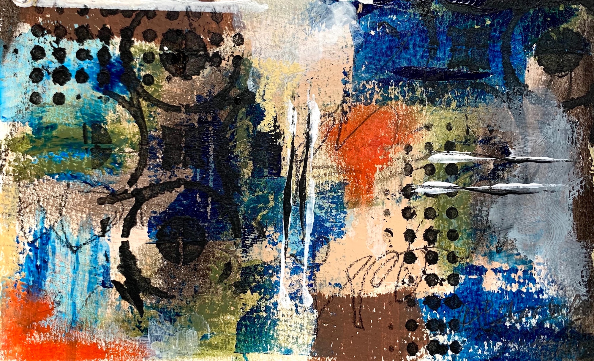 Original Abstract using acrylics, soft oil pastel and charcoal pencils on watercolor paper.