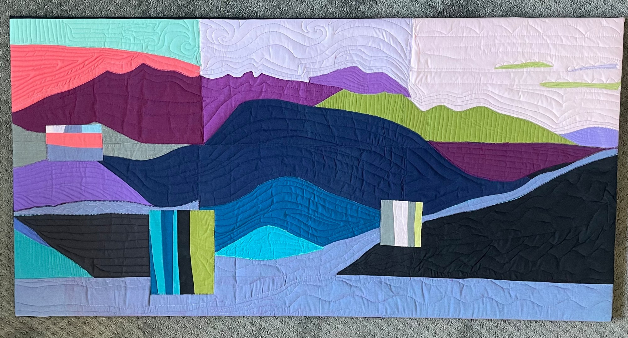 This five panel installation titled, Abstract Airport (2023) is a series of layered and stitched cotton quilts that draw from societal notions of Life’s journey as viewed from the vantage point of an airline traveler.