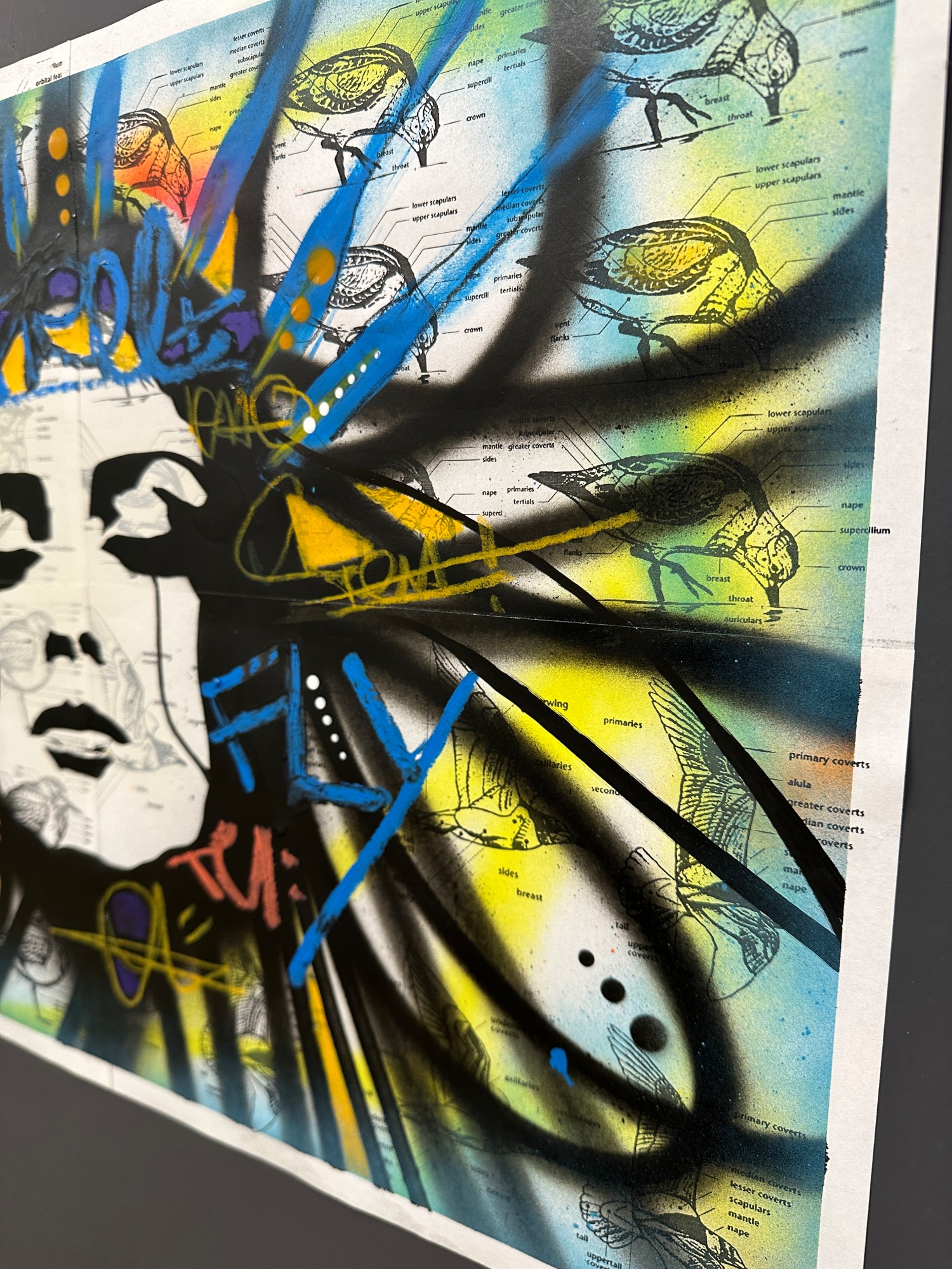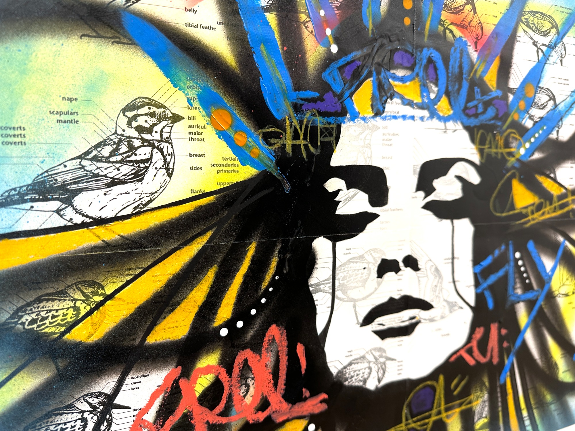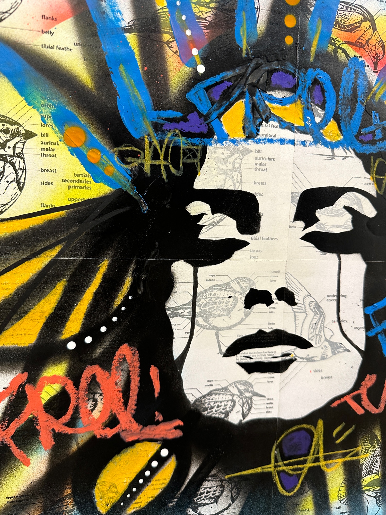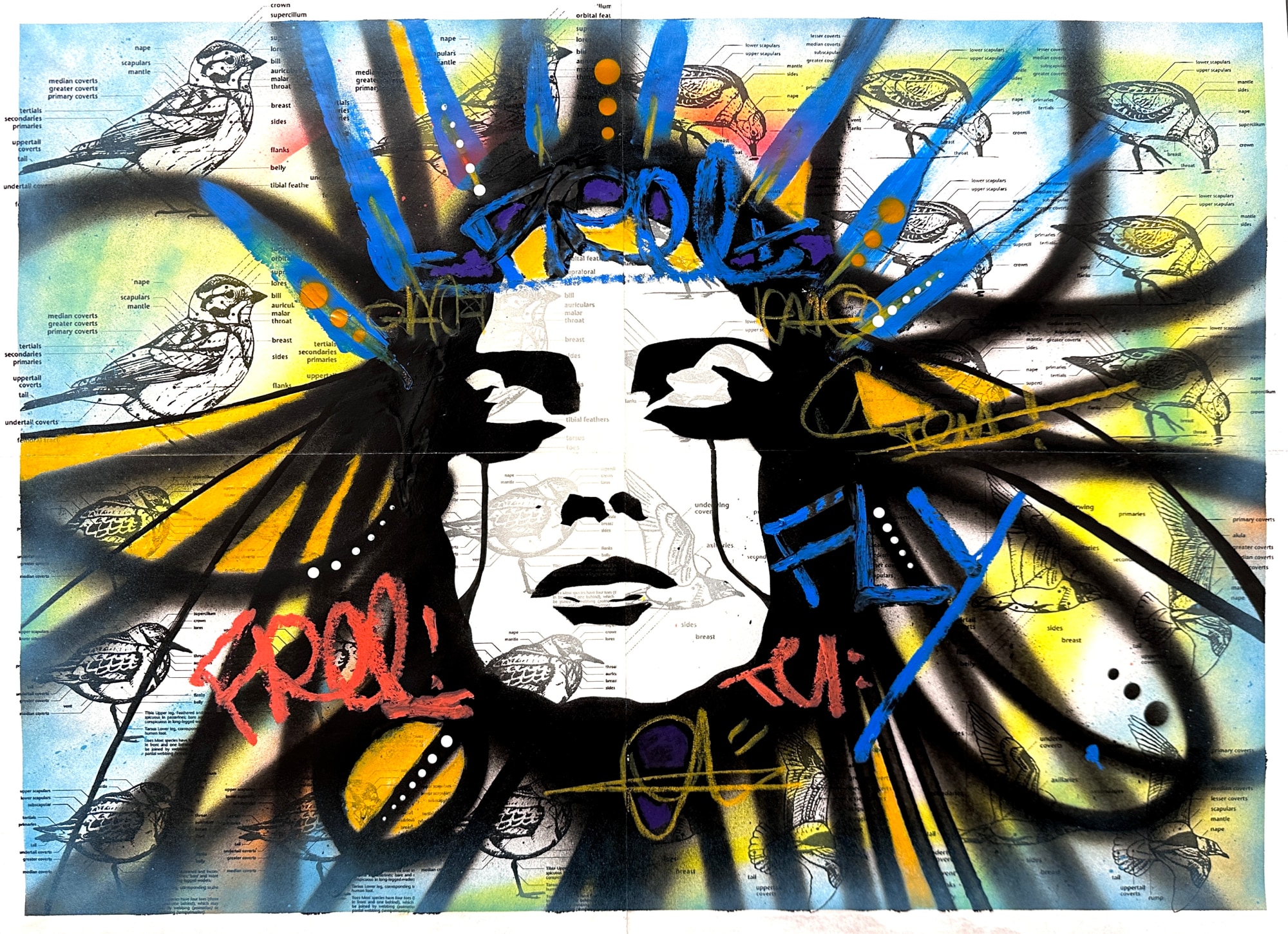 Acrylic, Spray Paint, Oil, and Wax on Paper