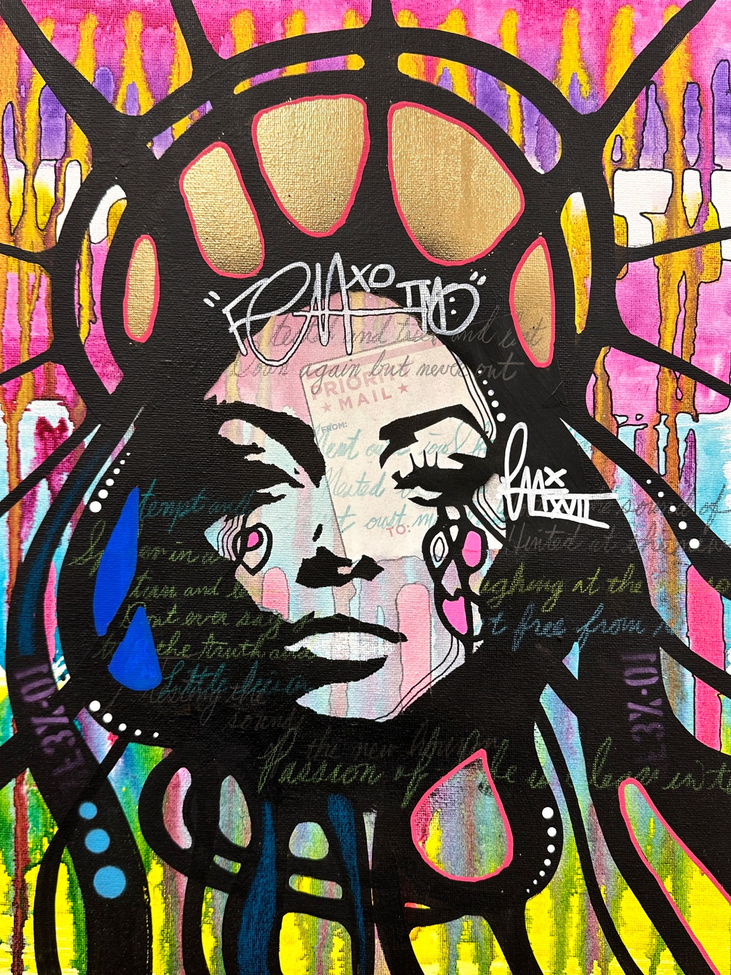 Acrylic, Spray Paint, Oil, Collage on Canvas