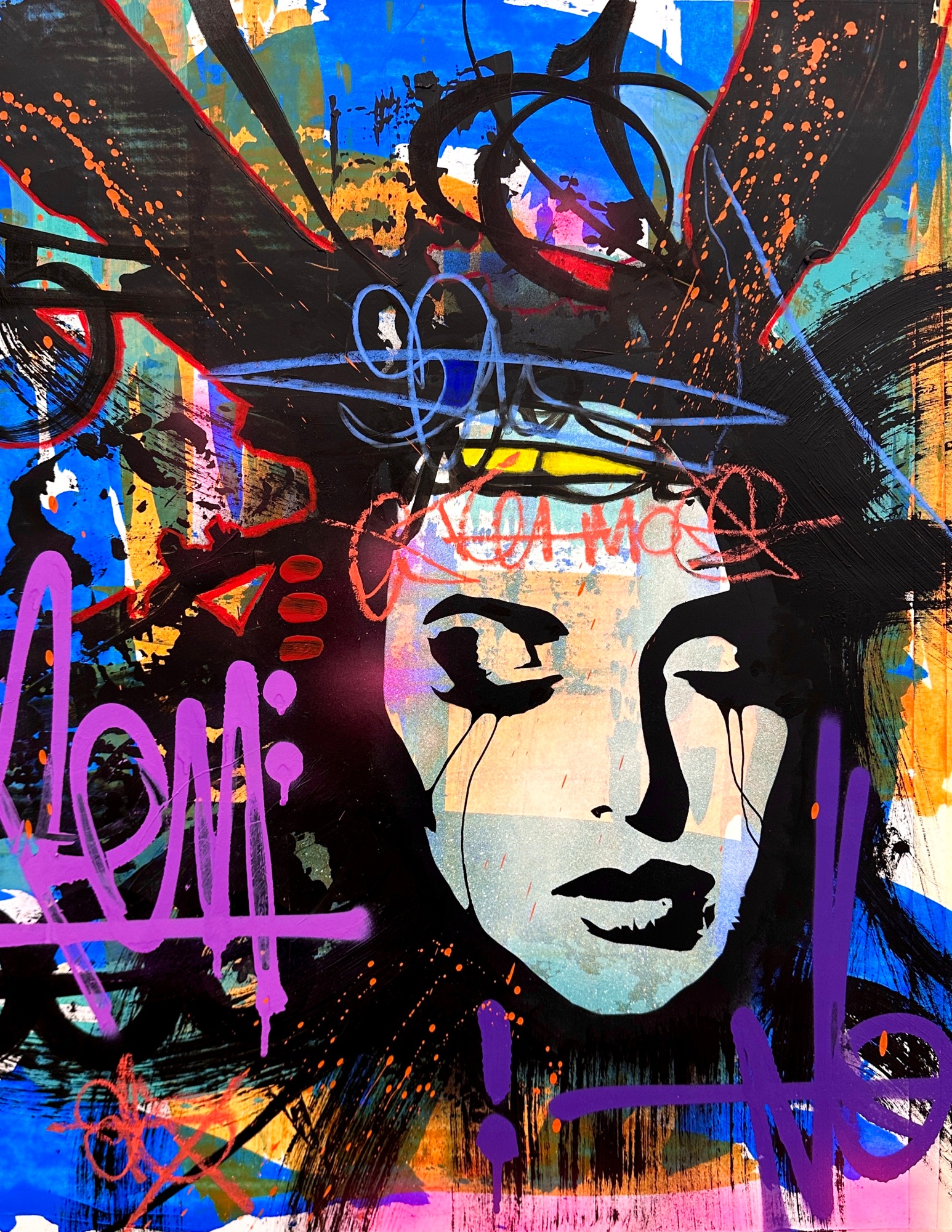 - Acrylic, Spray Paint, Wax, Graphite