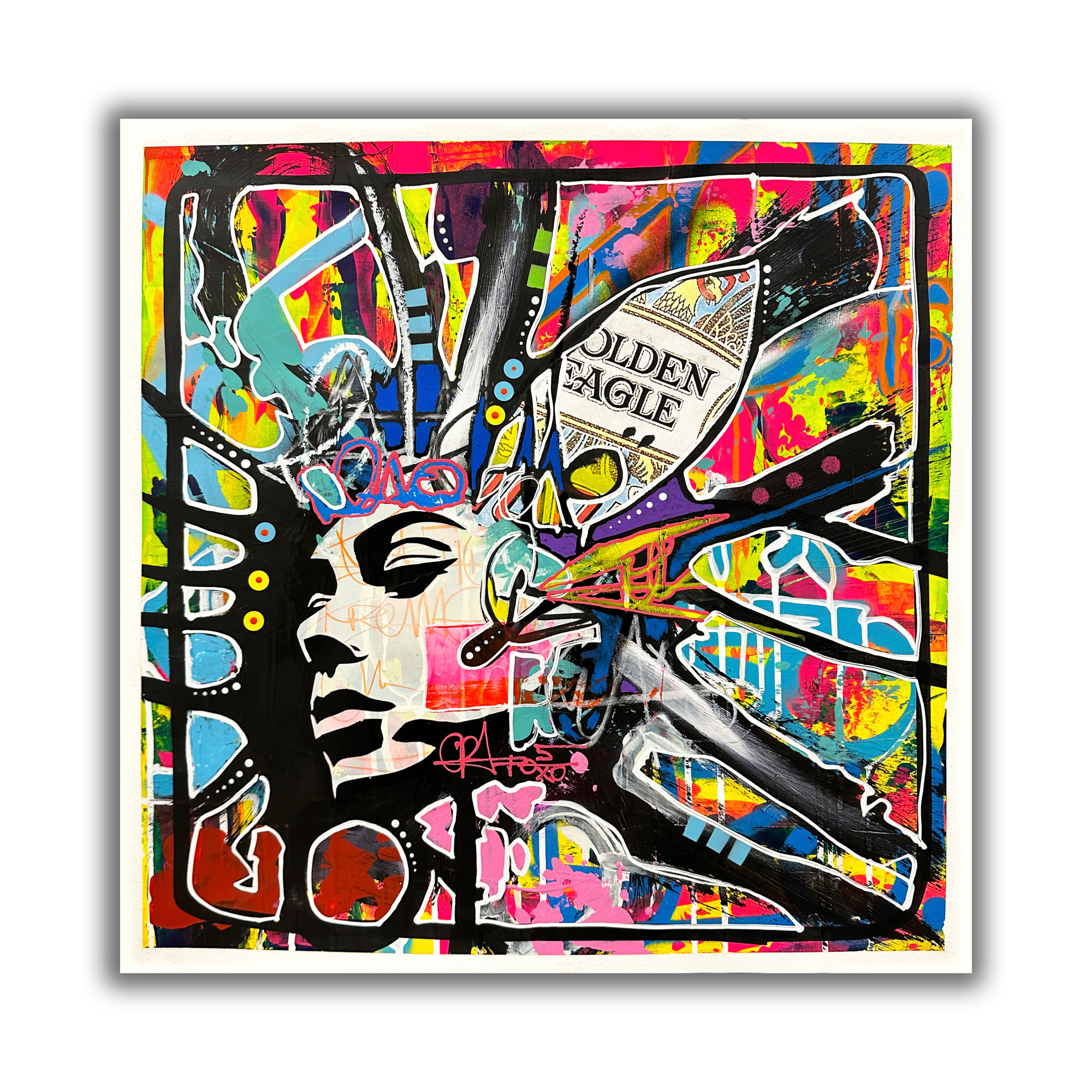 Acrylic, Spray Paint, Oil, Collage, Vintage Vinyl Beads, and Wax on Paper
