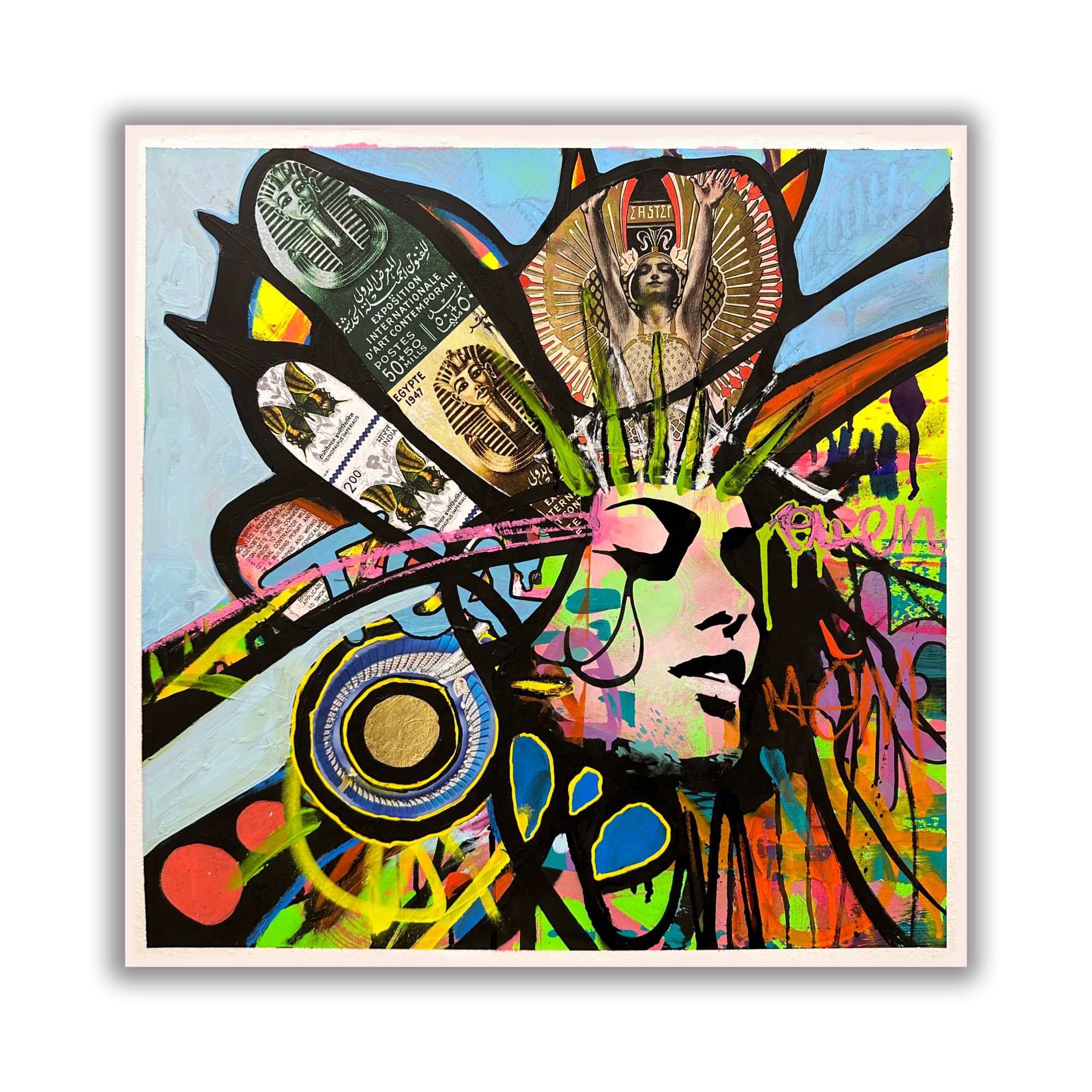 Acrylic, Spray Paint, Oil, Collage, Gold Leaf, and Wax on Paper