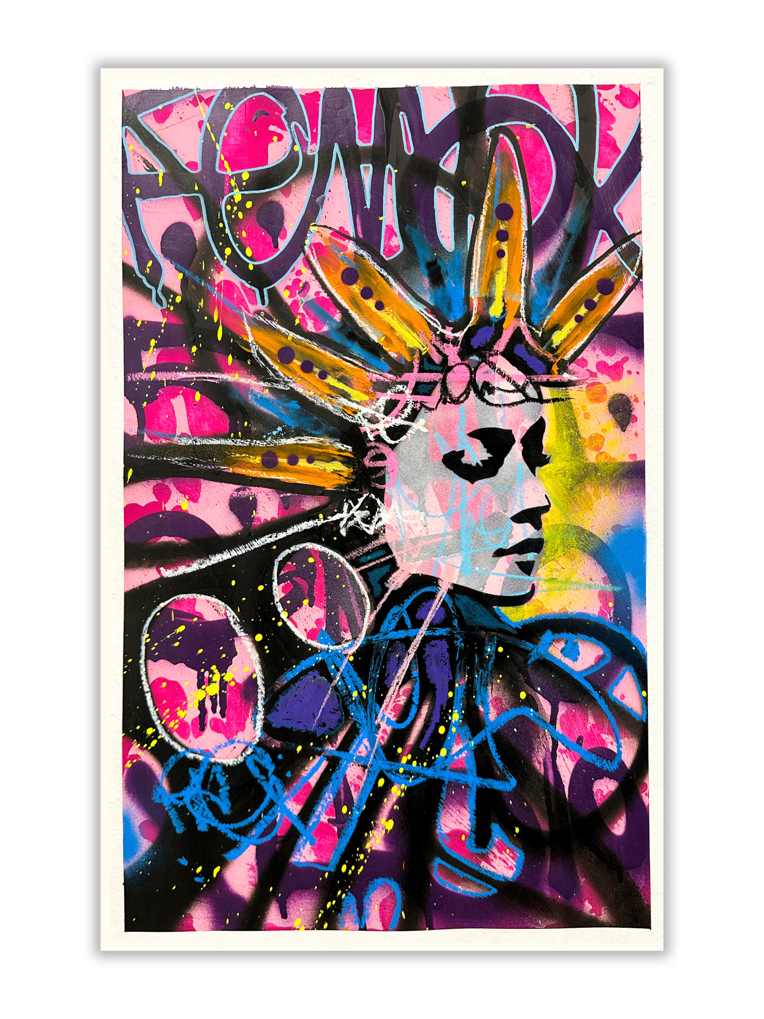 Acrylic, Spray Paint, Oil, and Wax on Paper