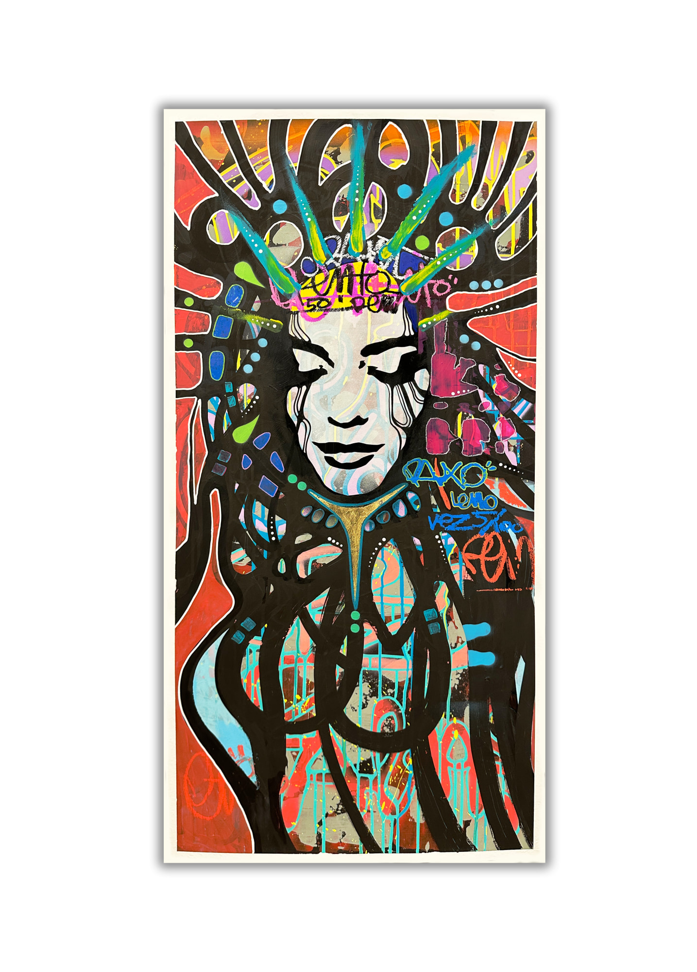 Acrylic, Spray Paint, Oil, Collage, and Wax on Paper