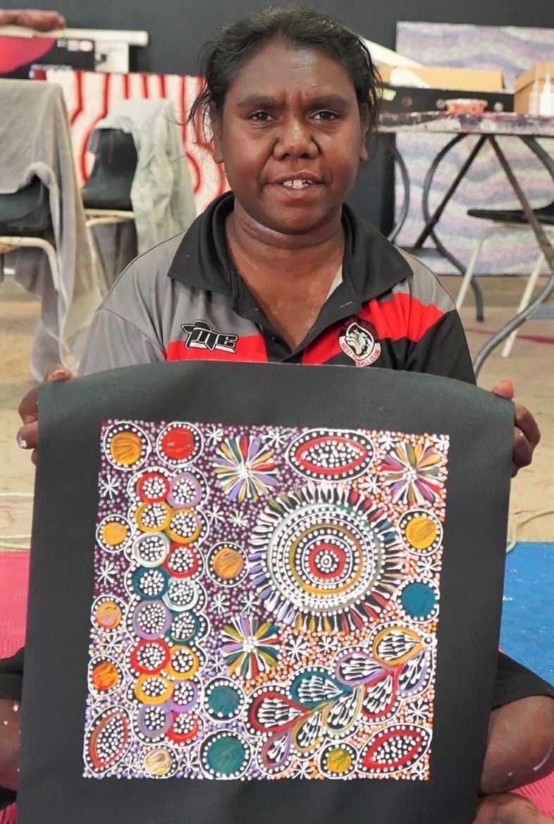 Belinda Golder Kngwarreye est une artiste du groupe Anmatyerre originaire de la commnauté d'Utopia en Australie centrale. Elle est née en 1986. Belinda a de fortes relations avec le monde artistique depuis très jeune - sa grand-mère est Polly Ngale (elle même sœur de Kathleen Ngale et d'Angelina Pwerle Ngale, des artistes majeures de cette partie du Déserty Central), sa mère Bessie Purvis Petyarre et sa soeur Janet Golder sont également des artistes accomplies.
