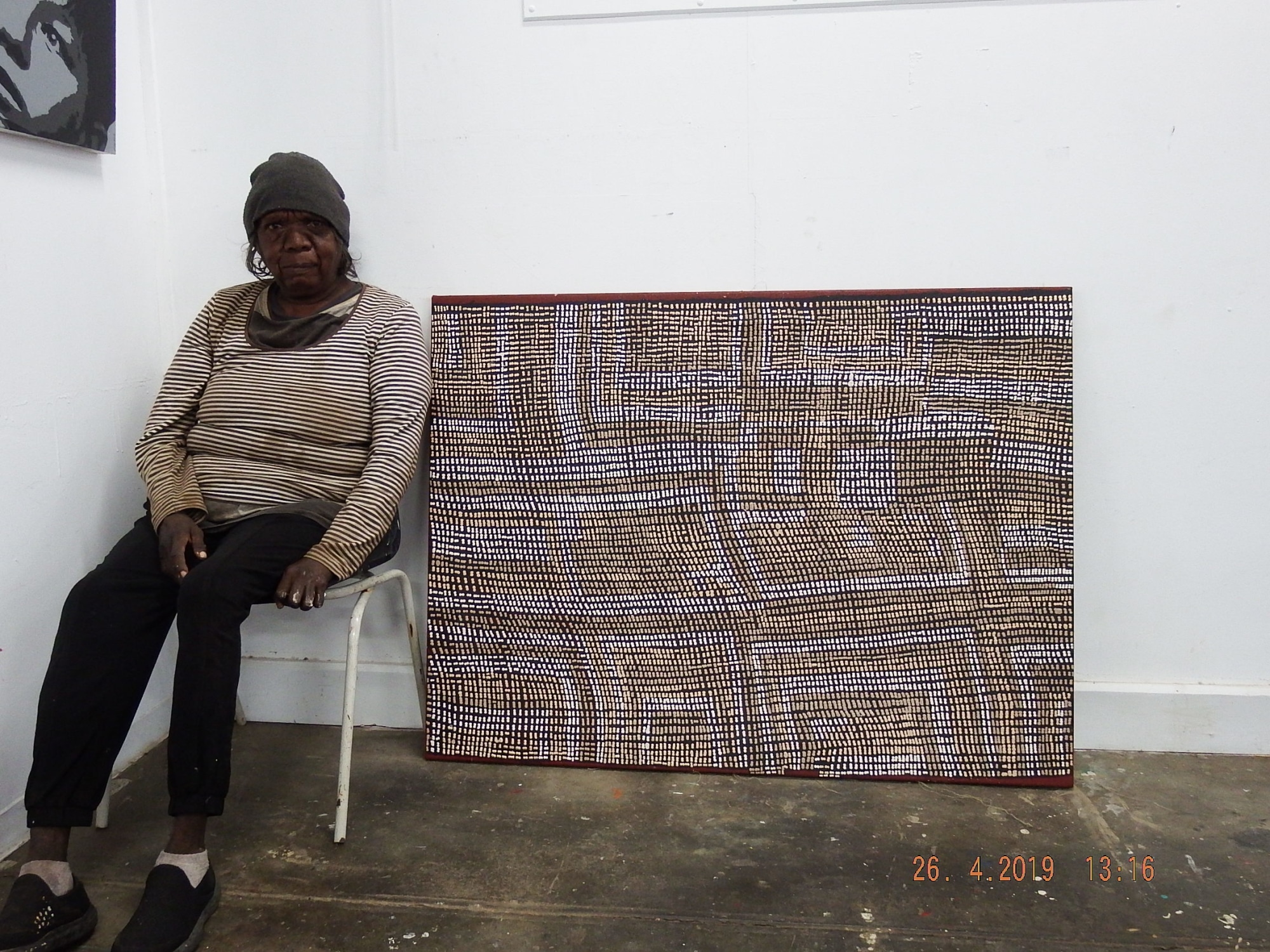 Lorna est née vers 1961. Elle est la fille du célèbre Timmy Payungka Tjapangati. Son second mari (le premier est décédé) est Billy Ward Tjupurrula, d’où son surnom Ward qui évite la confusion avec Lorna Brown Napanangka. Elle commence à peindre en 1996 avec les autres femmes pintupis. Son style très précis, le plus souvent des petits points blancs formant comme de courtes lignes droites sur un fond noir peints avec une grande minutie. Ce thème évoque les Ancêtres Femmes à Marrapinti confectionnant les bâtonnets que les initiés se mettent parfois à travers la cloison nasale. Elle a eu droit à plusieurs expositions personnelles dans de prestigieuses galeries et on peut la considérer comme l’une des chef de file de sa génération.