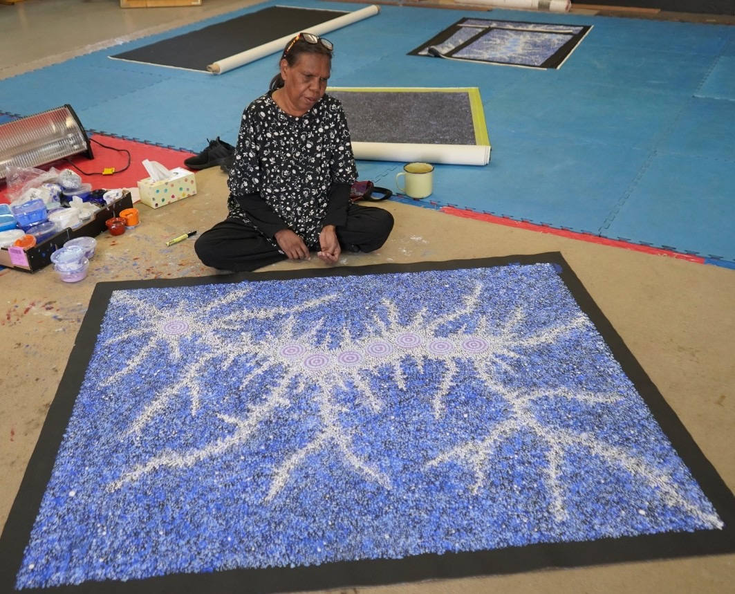 Son père, l’un des plus minutieux artistes du Désert Central, lui a transmis le goût pour les fonds particulièrement bien travaillés avec des techniques différentes mais aussi un grand sens des couleurs inspiré par le bush.