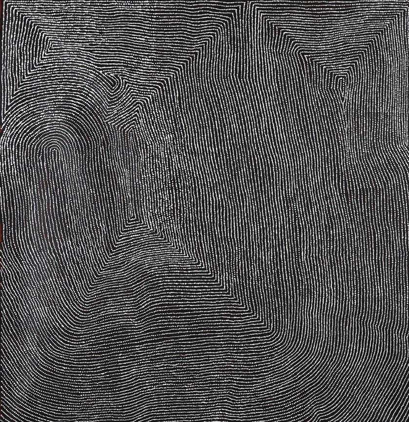 La plus grande partie de ses « Rêves » sont des histoires Tingari liées aux sites de Kanapilya, Marruwa et Marna. Il adapte, comme ses deux frères, également des peintres célèbres, Walala et Thomas, les motifs sacrés, ceux peints de façon éphémères sur les corps, sur le sol, les objets sacrés ou les roches. Chaque frère le fait à sa façon. Warlimpirrnga utilise la technique pointilliste classique des peintres aborigènes qui donne un sentiment de vitalité par la vibration qu’elle apporte. Les lignes, légèrement mouvantes, renforcent encore les effets optiques et Warlimpirrnga est passé maître dans l’art de gérer la surface de la toile, d’y insuffler un sentiment de mouvement en manipulant cette ligne, en lui faisant prendre des directions différentes, de la courbe lente à l’angle aigue. Le tout avec le plus souvent deux teintes contrastées. A l’aide de variations subtiles il obtient des formes très puissantes et comme souvent dans l’art aborigène, très modernes bien que remontant à la nuit des temps.