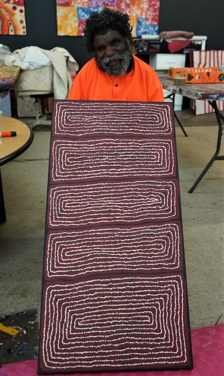 Thomas est encore jeune lorsqu’en 1984 sa famille prend contact avec la civilisation occidentale pour la première fois. En 1987 il expérimente pour la première fois la peinture sur toile mais cette expérience est de courte durée car son âge et donc ses connaissances ne sont pas suffisantes. Il se remettra à la peinture ultérieurement avec succès. Il s’inspire toujours des Cycles Tingari, motifs secrets et sacrés qui racontent de façon symbolique le voyage des Ancêtres qui portent ce nom.