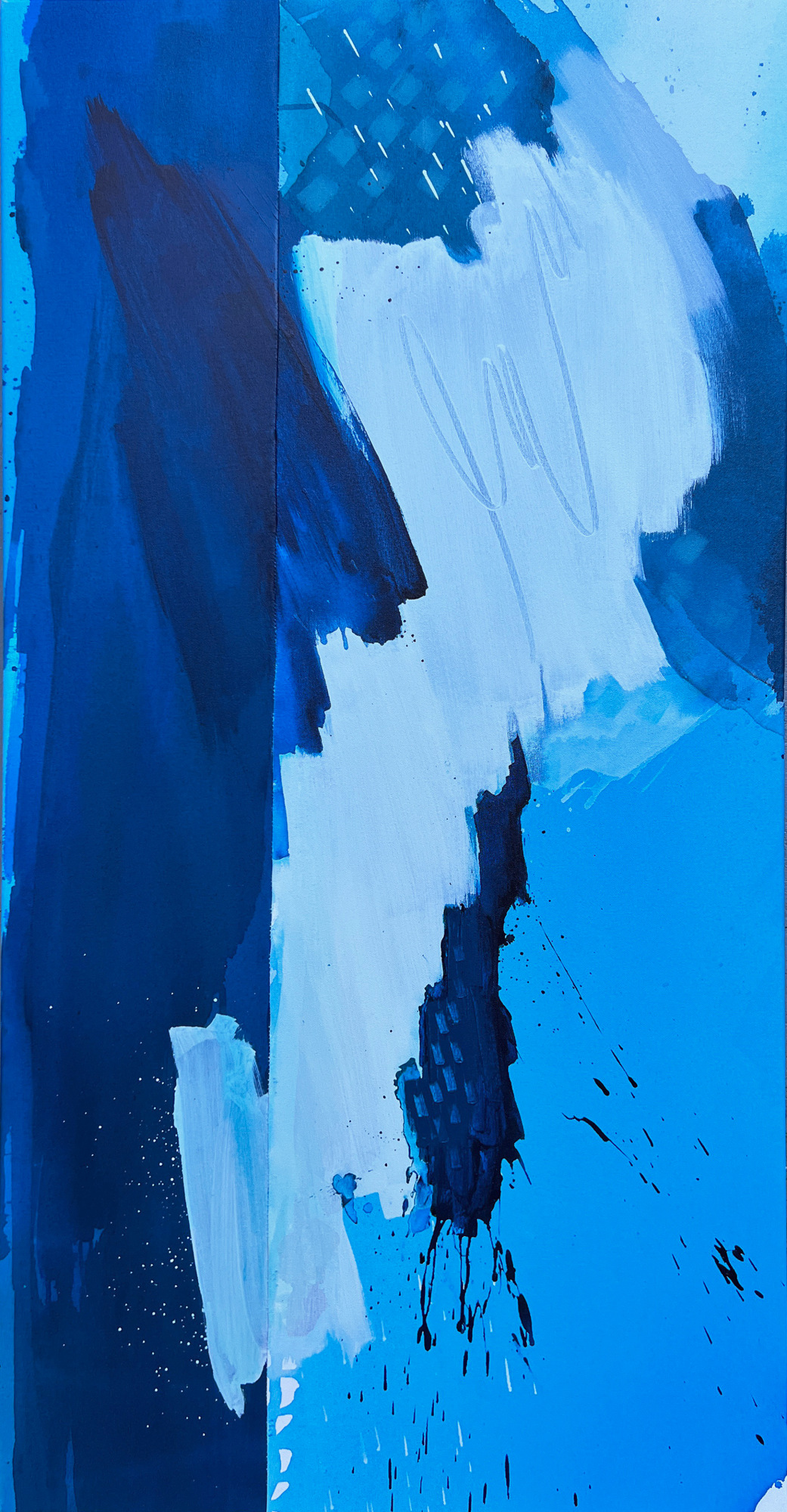 Bailey Silva's gestural paintings are defined by bright color palettes and layered paint, evoking ethereal qualities of water above / below the sea surface.