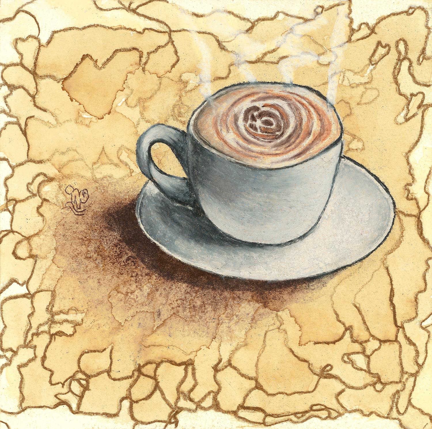 "Brewed Elegance" presents a captivating illustration that marries the rich texture of coffee with artistic finesse. The chocolate dust shaped rose, meticulously detailed, invites the viewer into a world where the ordinary becomes extraordinary. The background, reminiscent of a coffee-stained canvas, adds a layer of intrigue and depth. This piece, with its engaging and confident style, is a perfect addition to any space seeking a touch of sophistication and warmth.