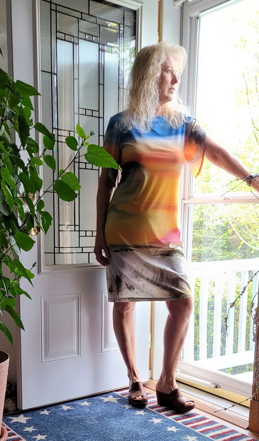 - Length: 38” - Tulip crossed sleeves 3/4 length - Ultra fluid silky ITY jersey