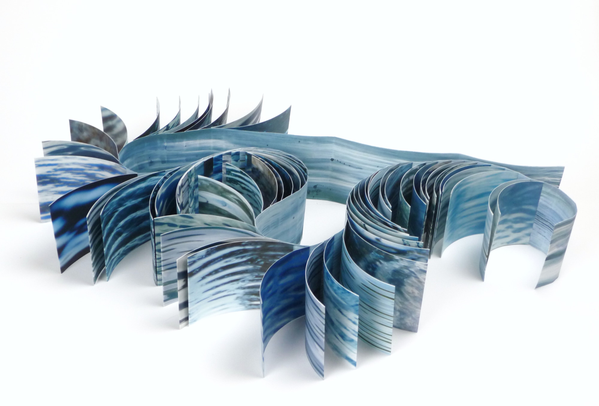 Sequence of digital photographs of streams, rivers, and lakes in eastern Connecticut. Archival pigment prints (Epson 7880) on surface gampi paper, dragonscale binding with kozo paper. Open size is 5" by variable length.