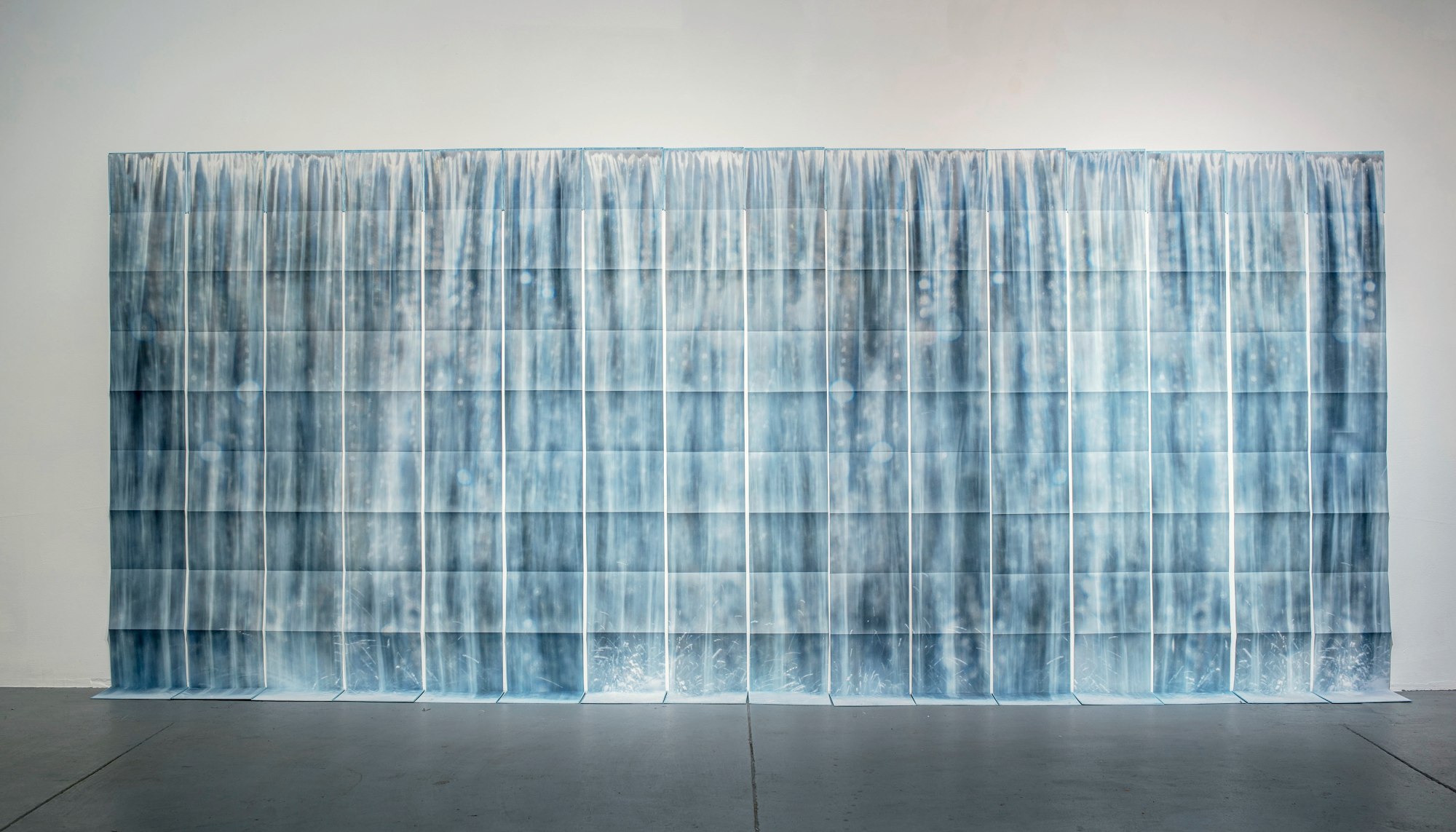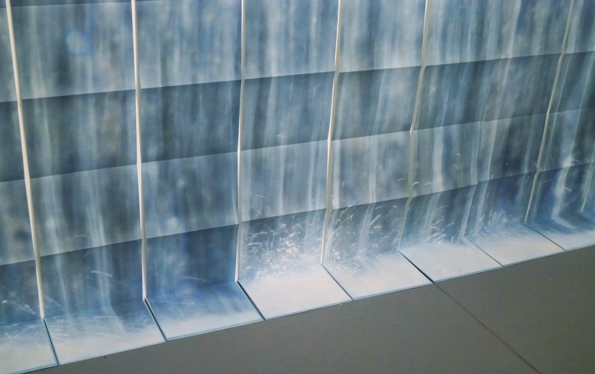 Photographs have a digital double exposure. Installed dimension: 84" x 188" x 1" Storage dimension: 13" x 6" x 10"