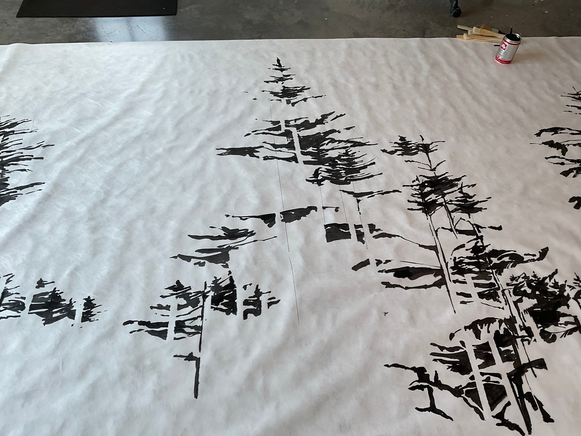 BOREALIS: Arrhythmia is the artist’s first temporary public installation. 32 Ryans Hill Road (32RHR) is the contemporary, purpose built studio and artist’s home designed by Barbara Houston which provides the spare proto-minimalist frame for a 200’ painting of the boreal forest. As with all of Houston’s work the visible and the invisible are put into direct play. Stating her preference for materials with a past, elements with irreplaceable presence and with scars and memories that reference a former purpose, Houston envelops the architecturally lauded form with the powerful but ghostly presence of collective pasts and unknown futures.