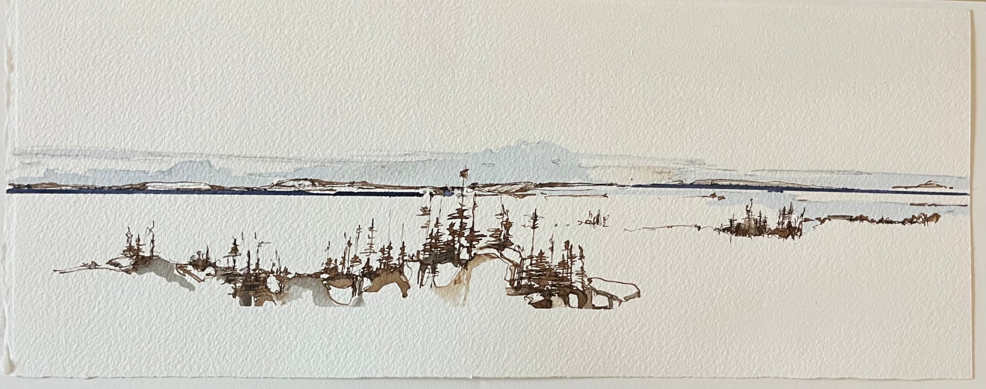 Archival ink mounted on French Arches paper. Signed on reverse, hinged with archival tape, sealed, framed.