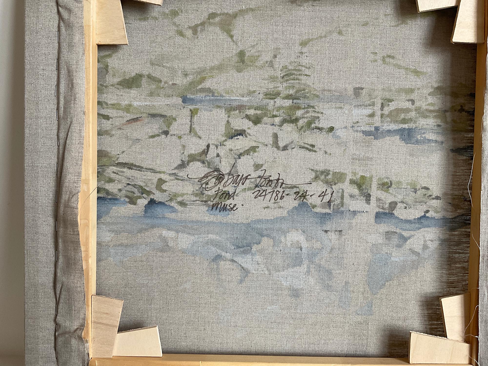 VERSO are painted firstly in the reverse by pressing pigmented gesso through the linen. Once the reverse layers are established, the linen is removed and restretched in the direct orientation. A second painting is done on the front canvas enhancing the layers and pigments that were initially pressed through the linen.