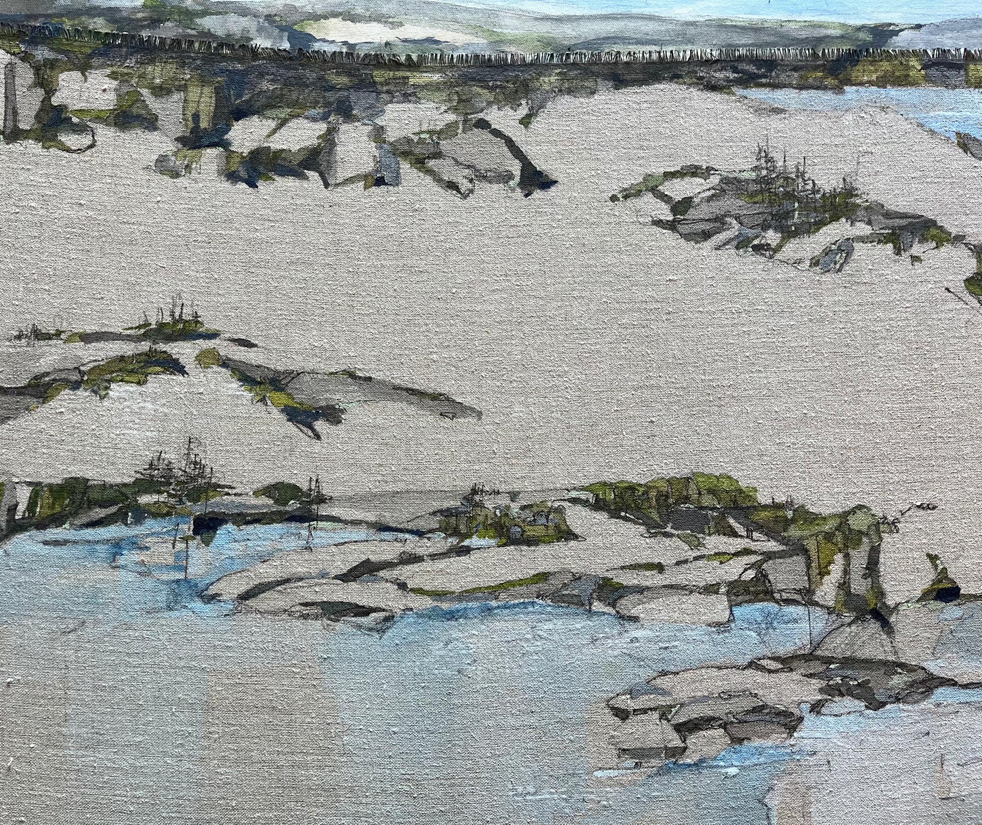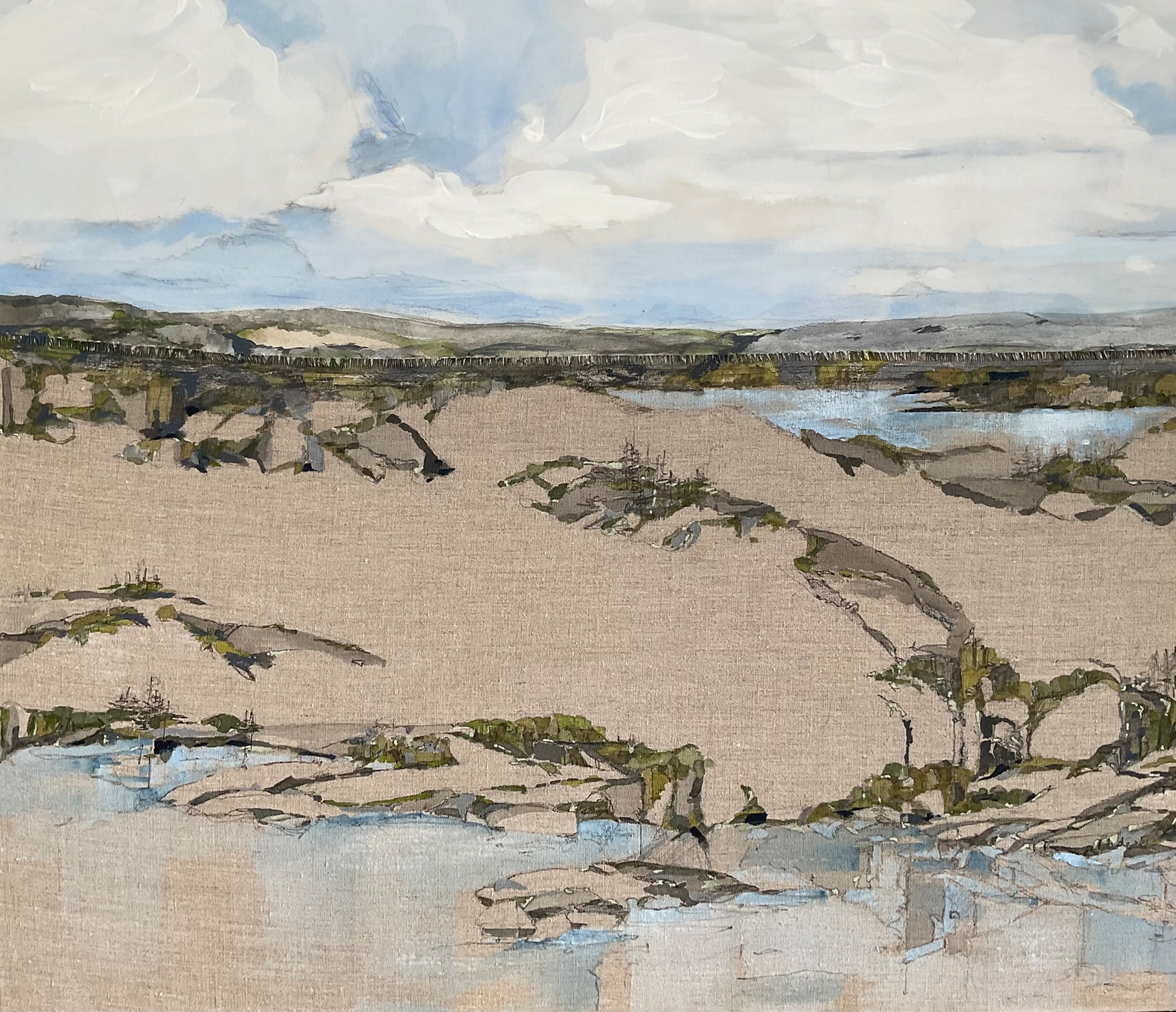 - Signature: Barbara Houston Ponds, Bonavista Peninsula 24786-24-37 acrylic + archival sepia ink on seamed cotton canvas (sky) and certified Belgian linen (ground)
