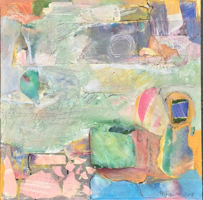Collage + acrylic + mixed media on wood, waxed