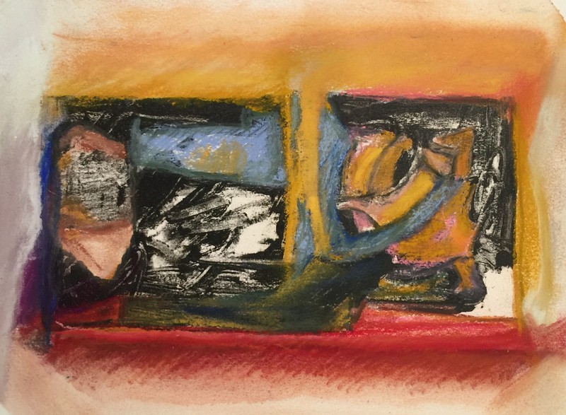 Monotype with pastel enhancement. Price is for original. Also available as prints in 2 parts.