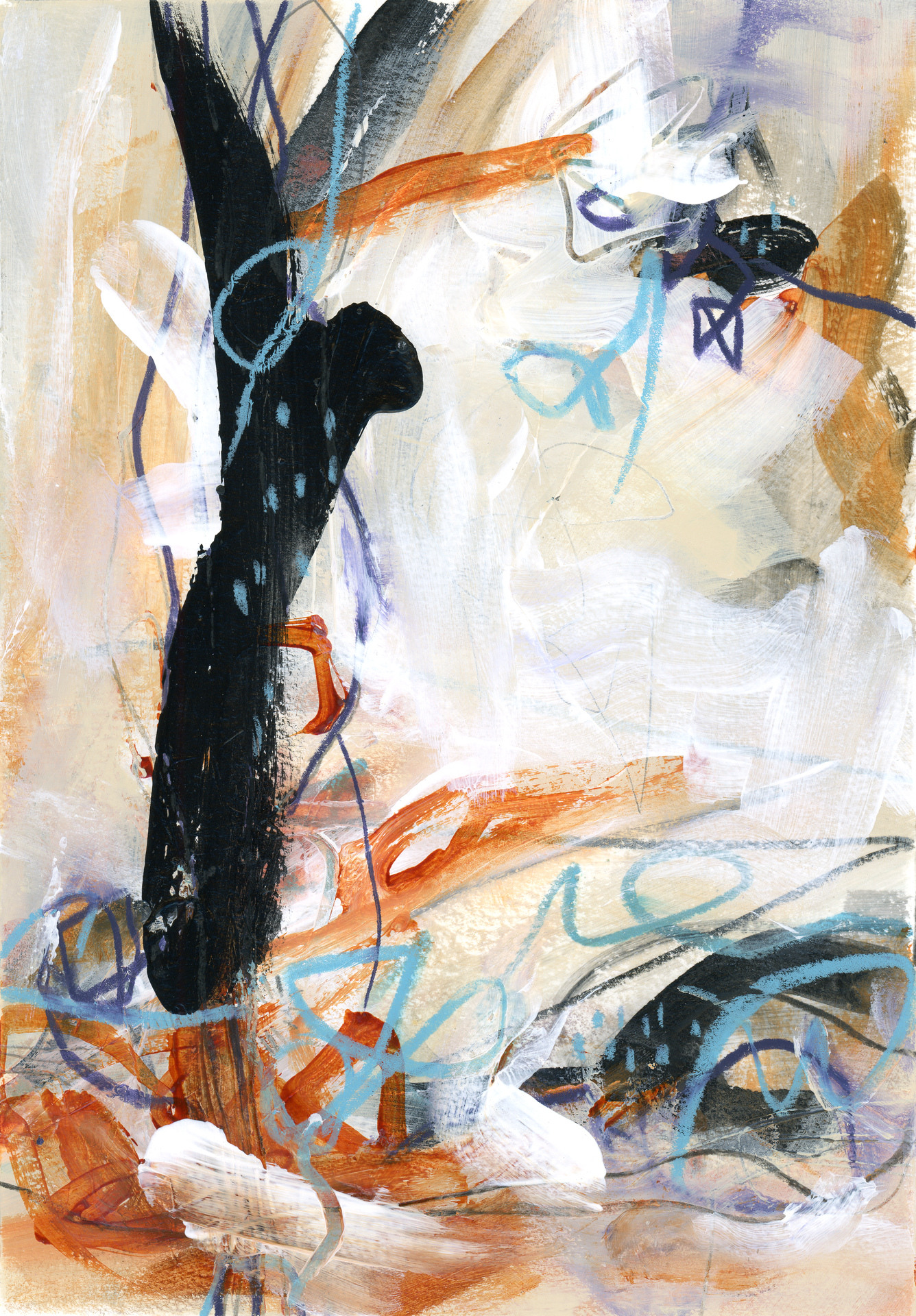 Acrylic, watercolor and pencil on paper