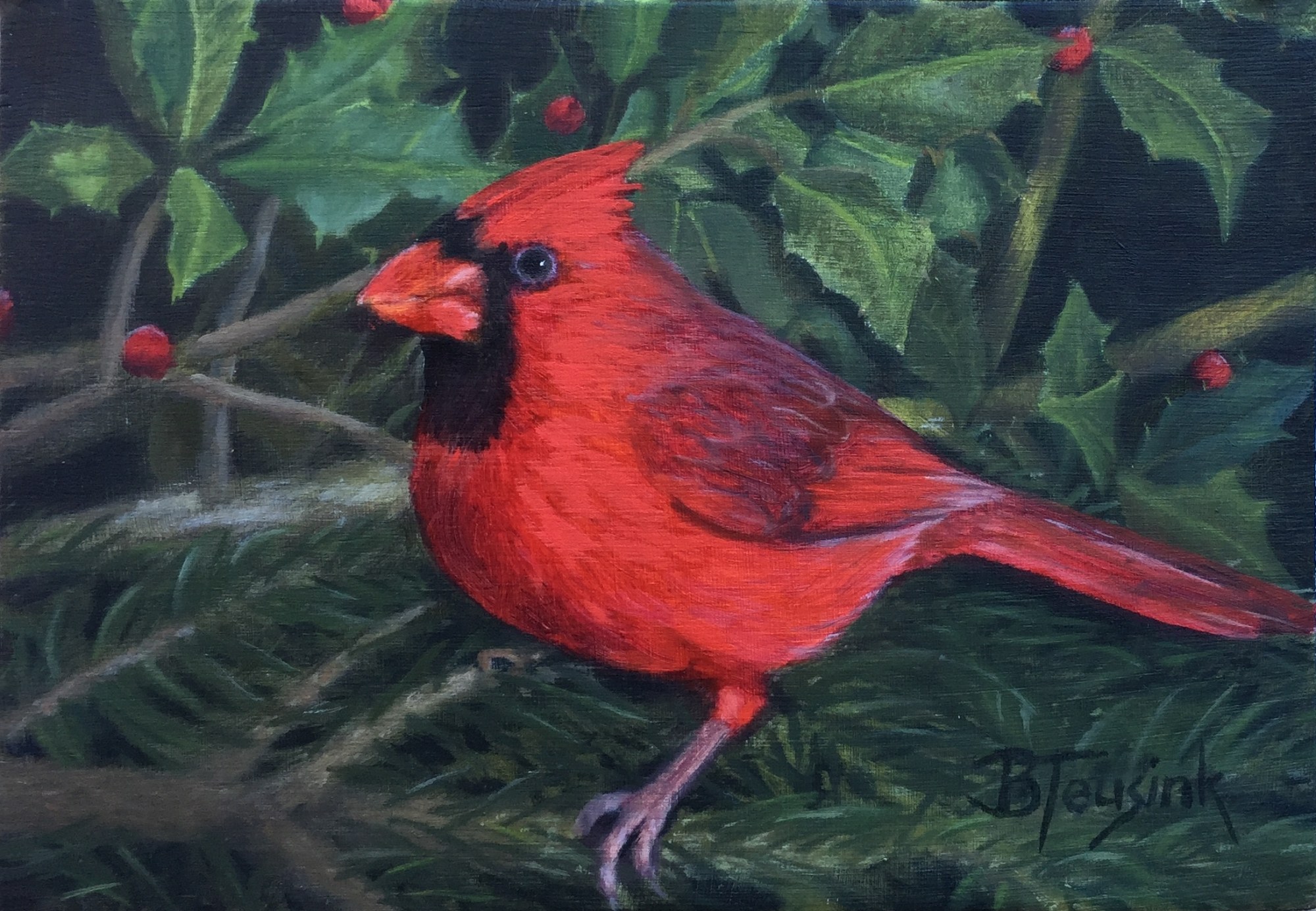 We always have a lot of cardinals around our house. They love to yell at our cat :-). This bright eyed little fellow is a cheery harbinger of the Christmas holidays!