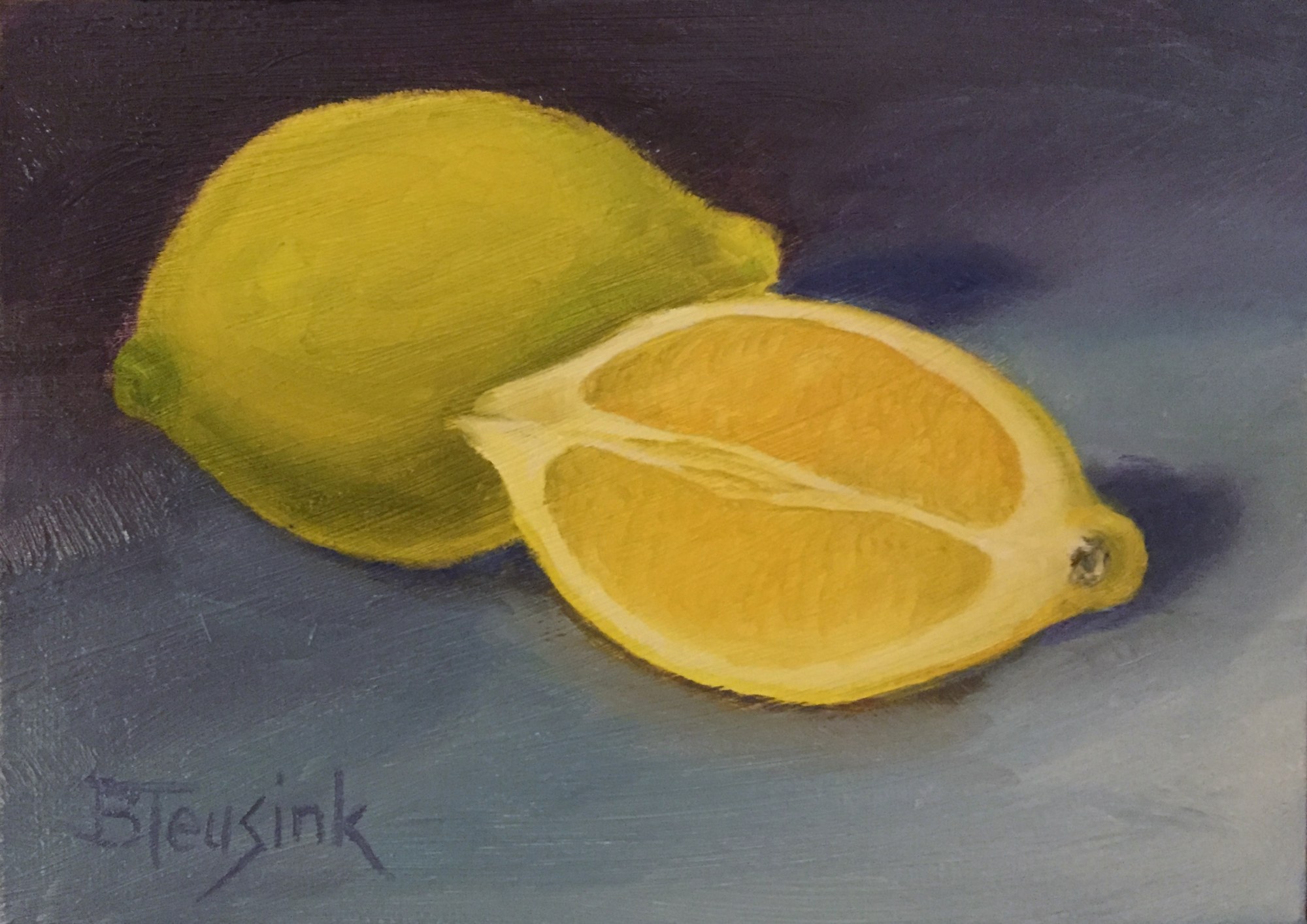 Lemons are so BRIGHT in color and flavor. Honestly, I love their tangy zesty flavor so much I've been known to just eat them plain. Especially Meyer lemons, oh my. These two were calling for a simple still life set up.