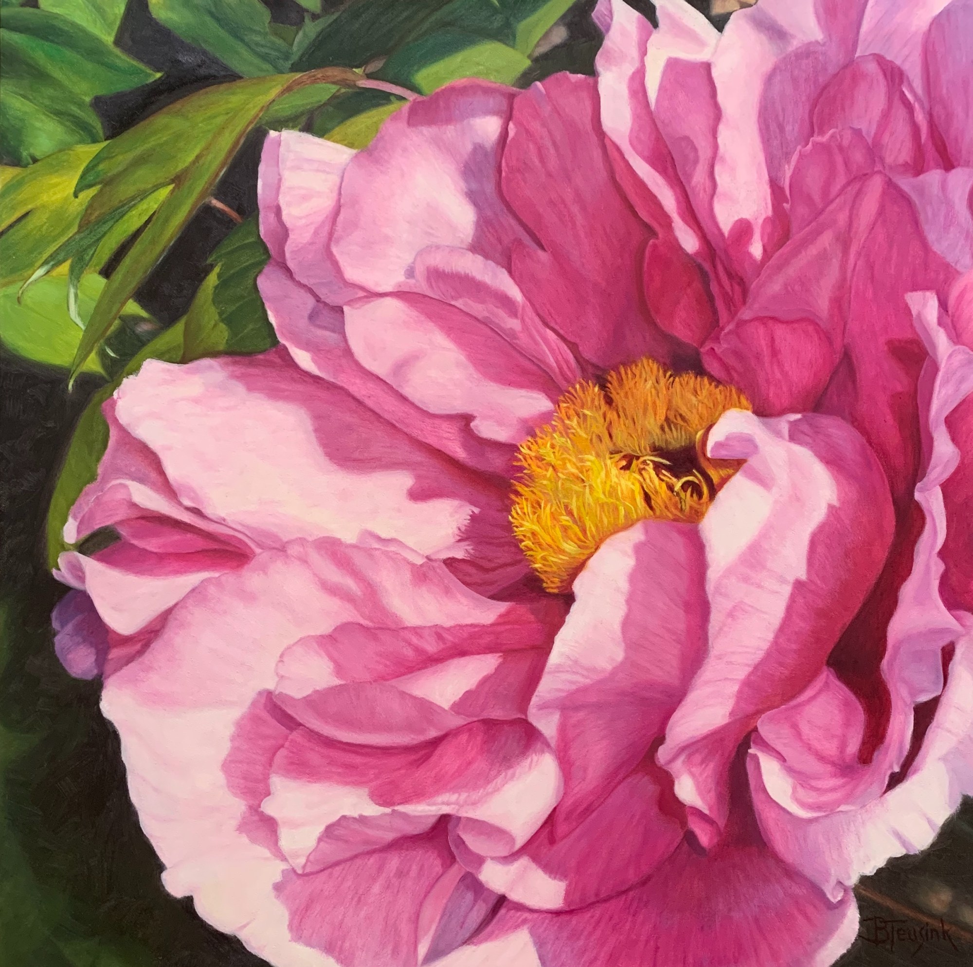 I love peonies. They are such beautiful flowers with all their twisted petals and bright centers.