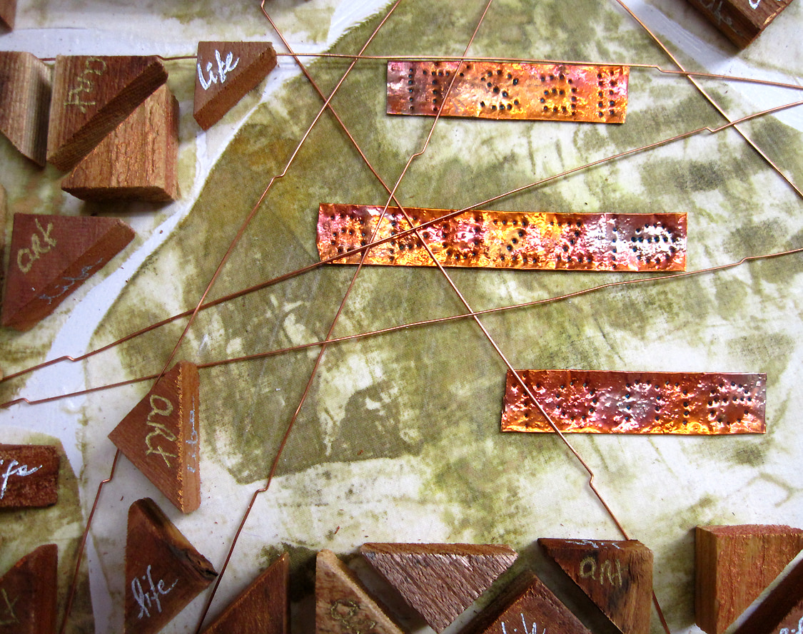 Wood,tile, paint, fabric