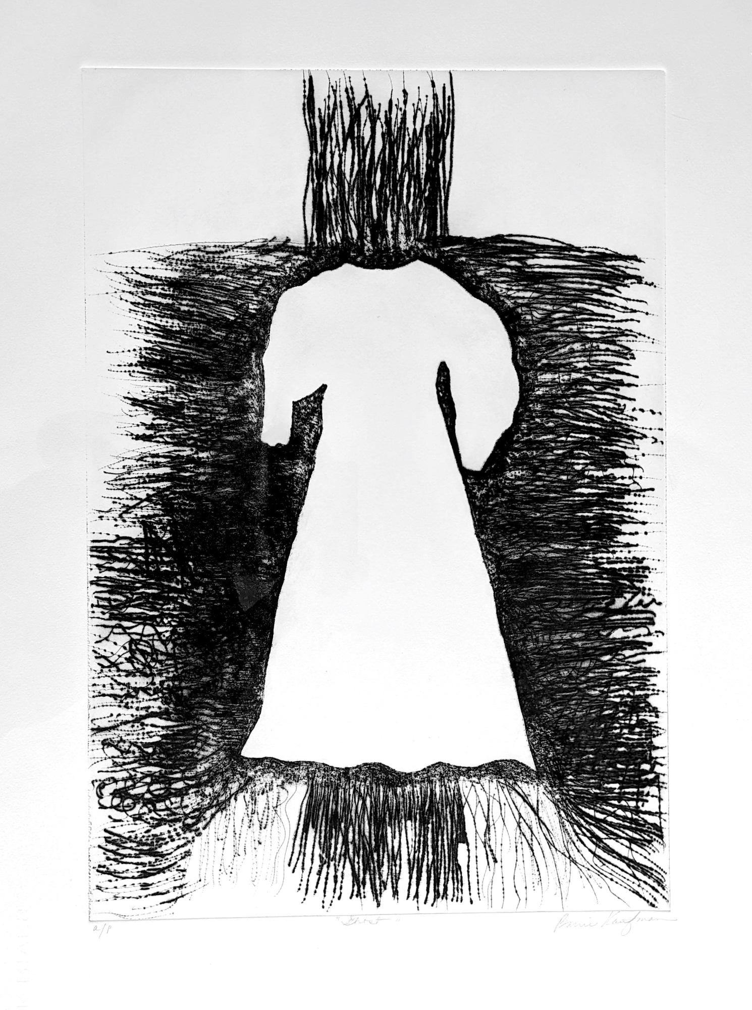 As part of the professional development grant, I examined the oldest dresses in the WV cultural center collection, historical archives. The tiny dresses from the 1700's struck me as impossible to wear with the constrictive waists and profiles. I wondered who these women were and what their lives were like, certainly they didn't have much of a voice, and so I depicted them without heads.