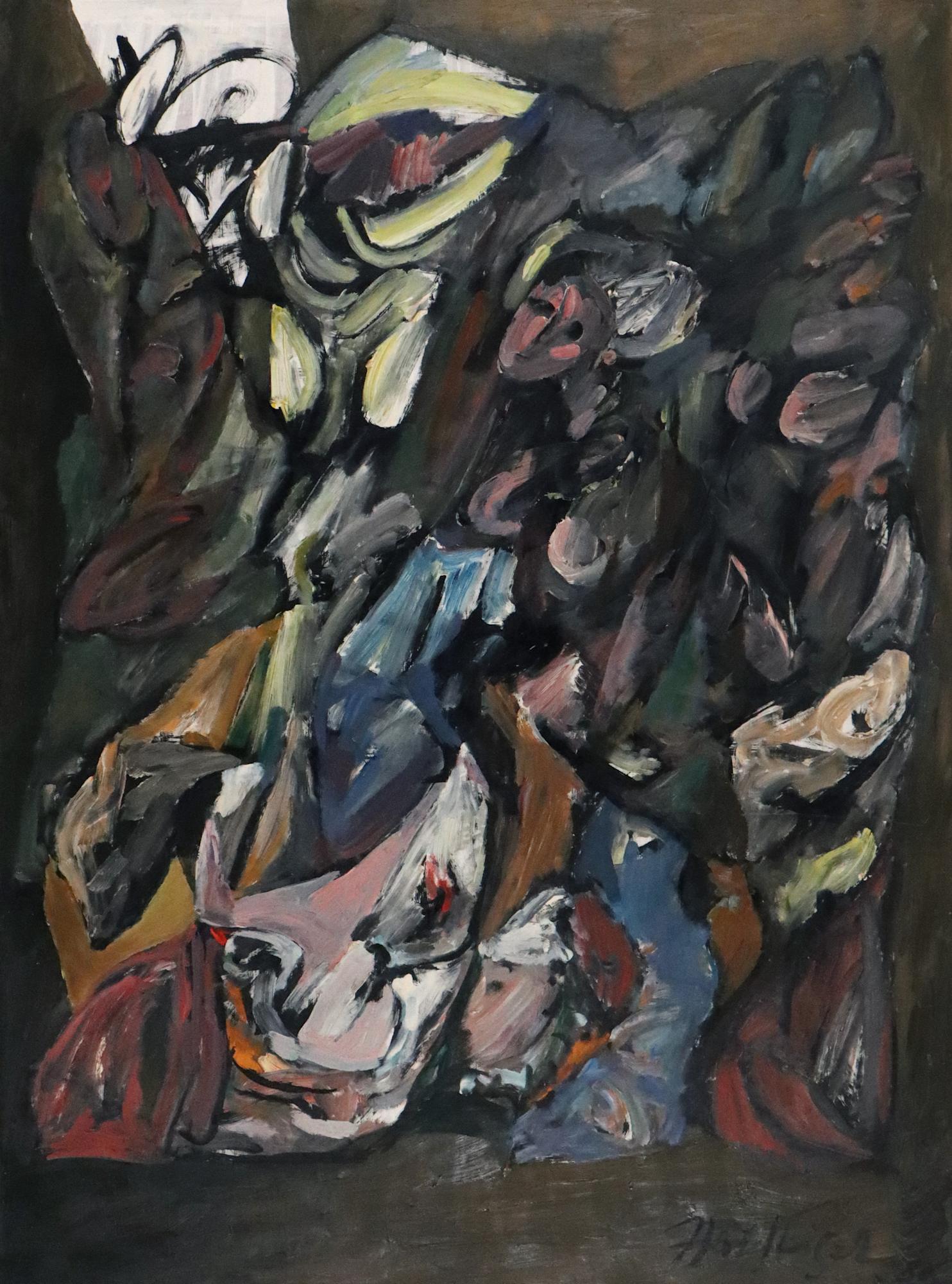 Painting, oil on board, abstract, figure, literature, Dante, poetry. Framed.