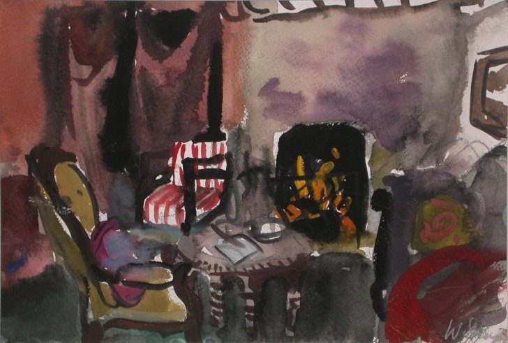 Lounge Room at Hill End with fire
