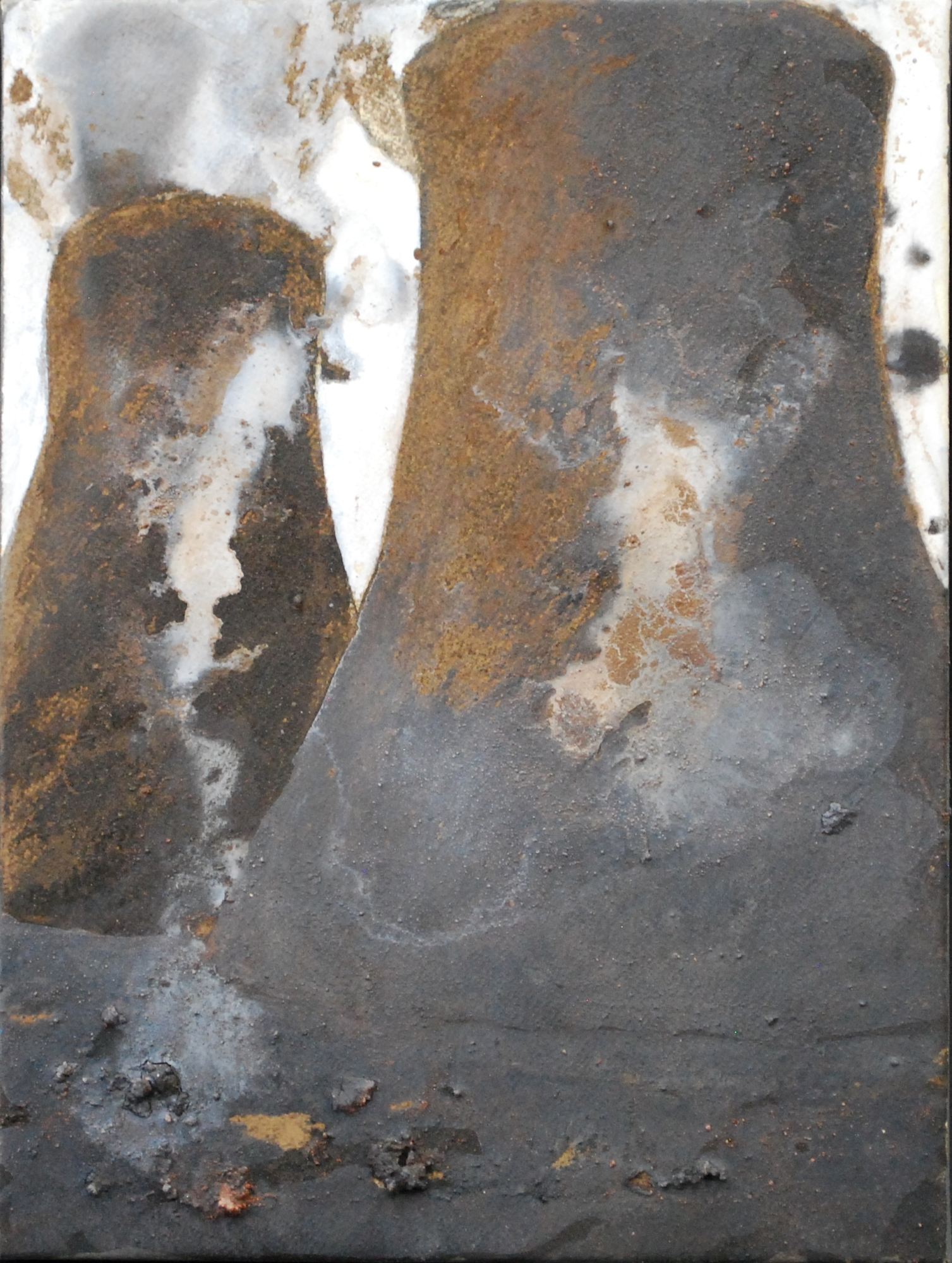 Painting, Velin Arches paper, Wallerawang powerstation, smoke, industrial, coal, chimney, texture, turbo - alternator's. Part of triptych. Not framed.