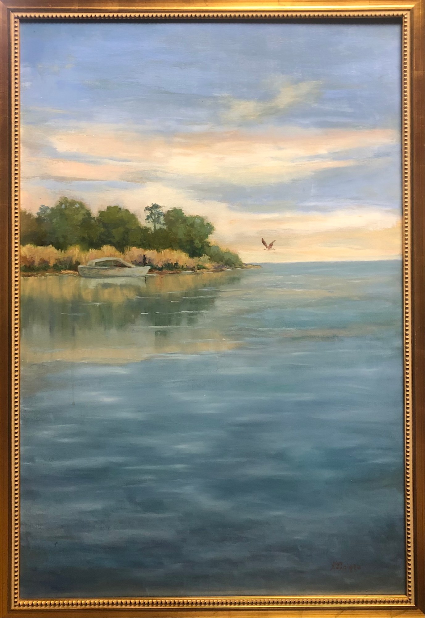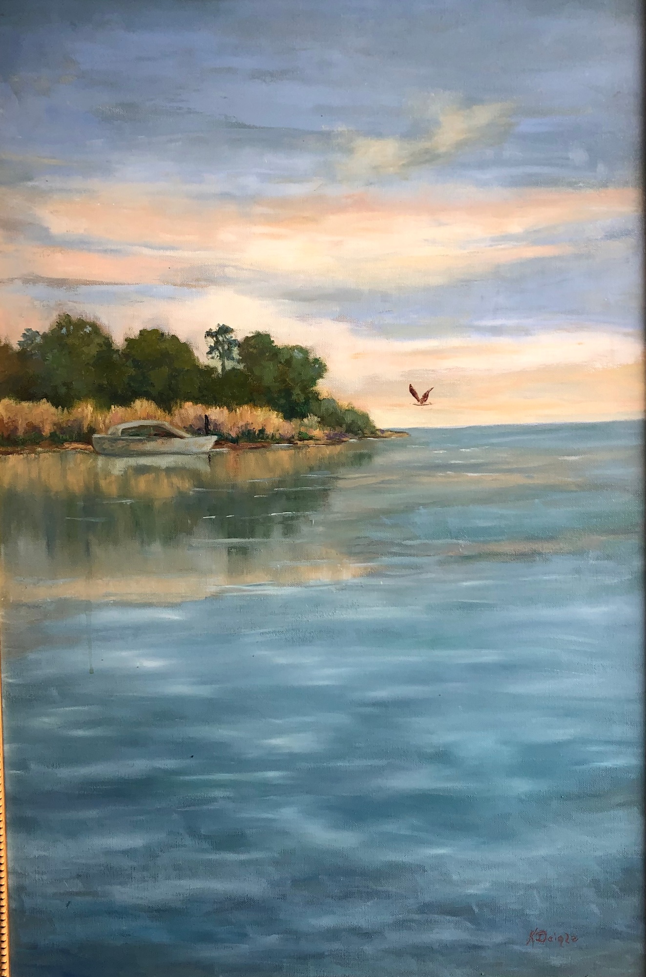 Gulf Marsh is a scene from Apalachicola, Florida. This moored boat has been in the bay for many years.