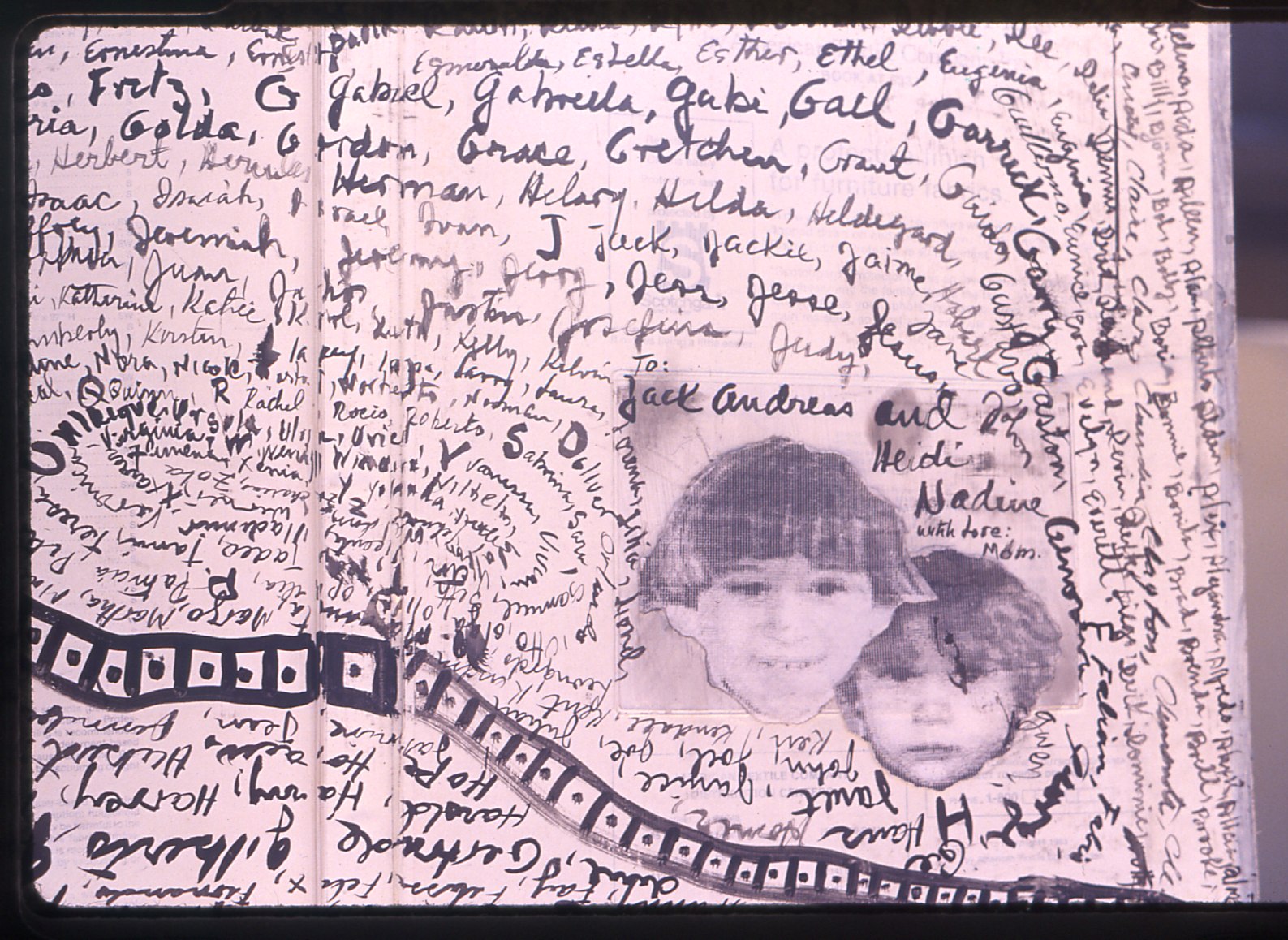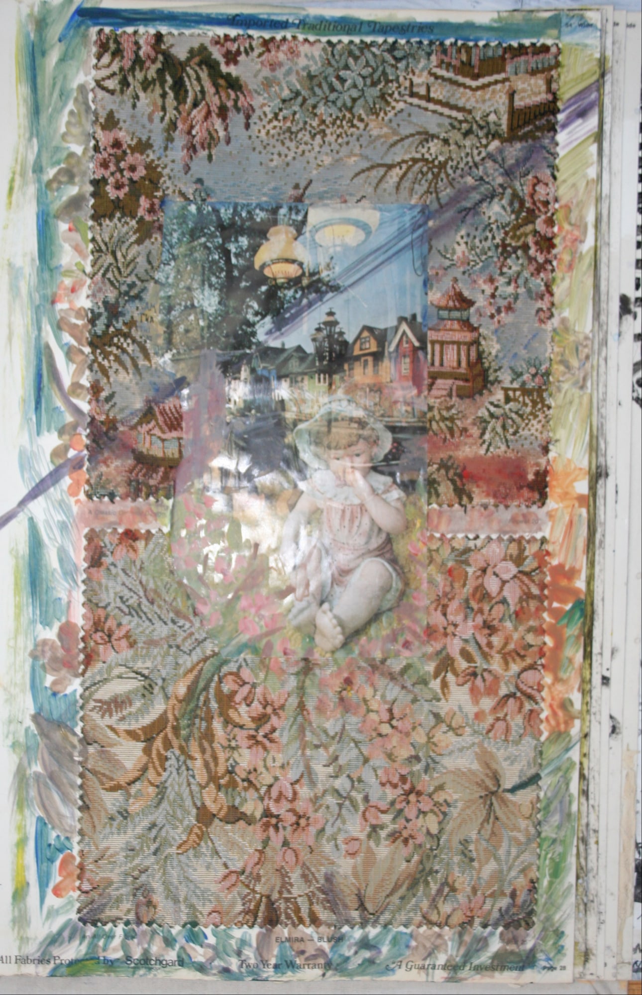 Drawings of newborn babies on the cover of this altered interior designer’s fabrics sampler album may mislead the casual viewer. This is a powerful statement against child neglect, abuse and the practice of turning adoption into a lucrative business.