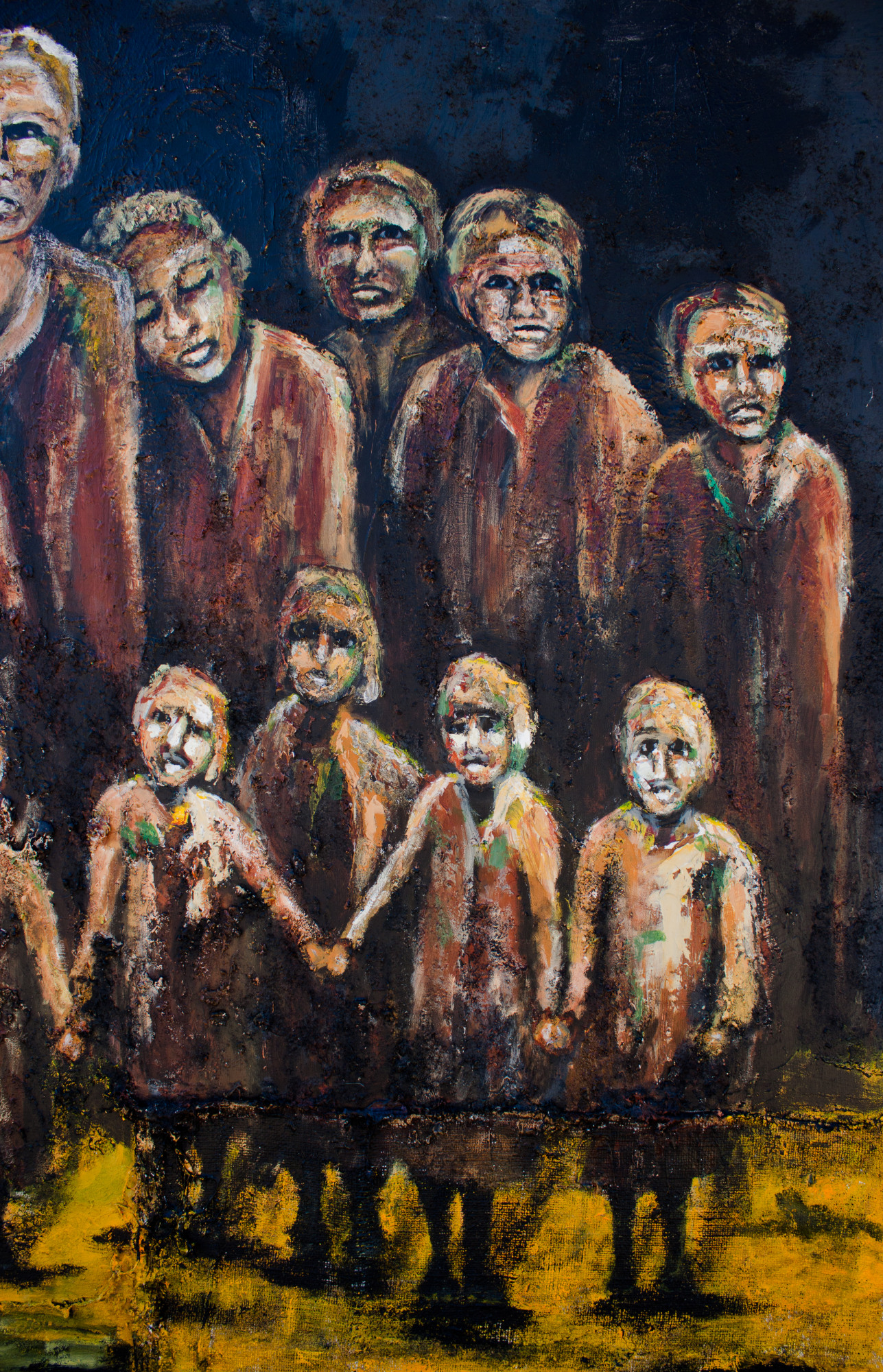 Message- Subject Matter: Emigration, Displacement, refugees, emigration, family, social Issues, contemporary painting.
